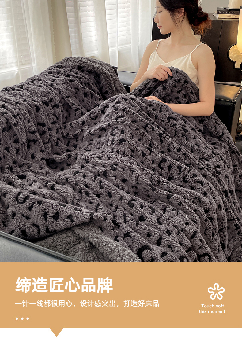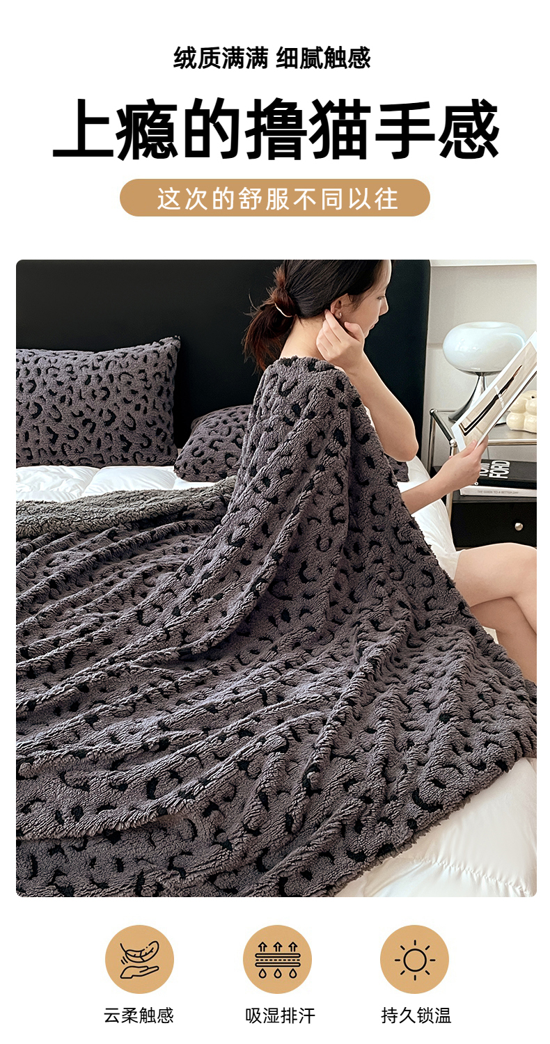 楼兰公主毛毯专供 2025爆款阳离子豹纹双层单层羊羔绒跨境绒毯 豹纹-奶白