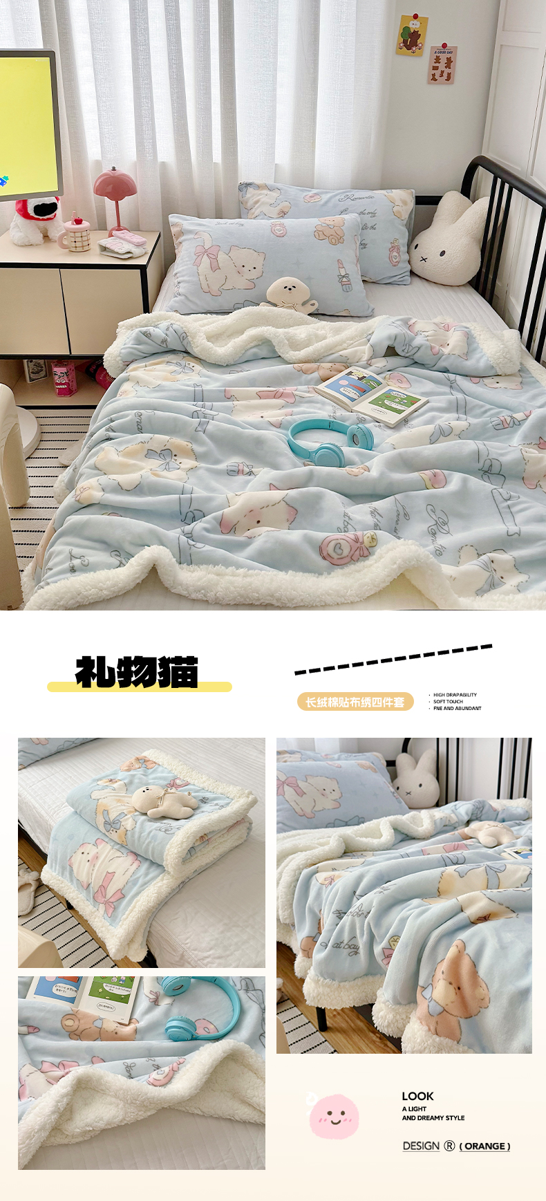 (总)寐居家纺 2025新款毛球毛巾绣牛奶绒四件套,毛球球·巴克汪仔,毛球球·豆蔻女孩,毛球球·奶黄拉布,毛球球·心动KT喵,组合图仅供展示不可下单
