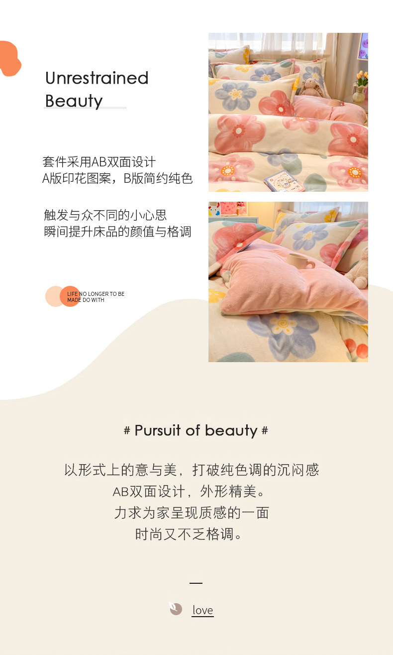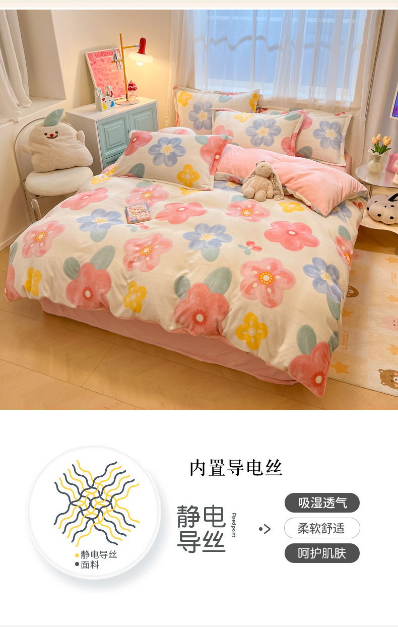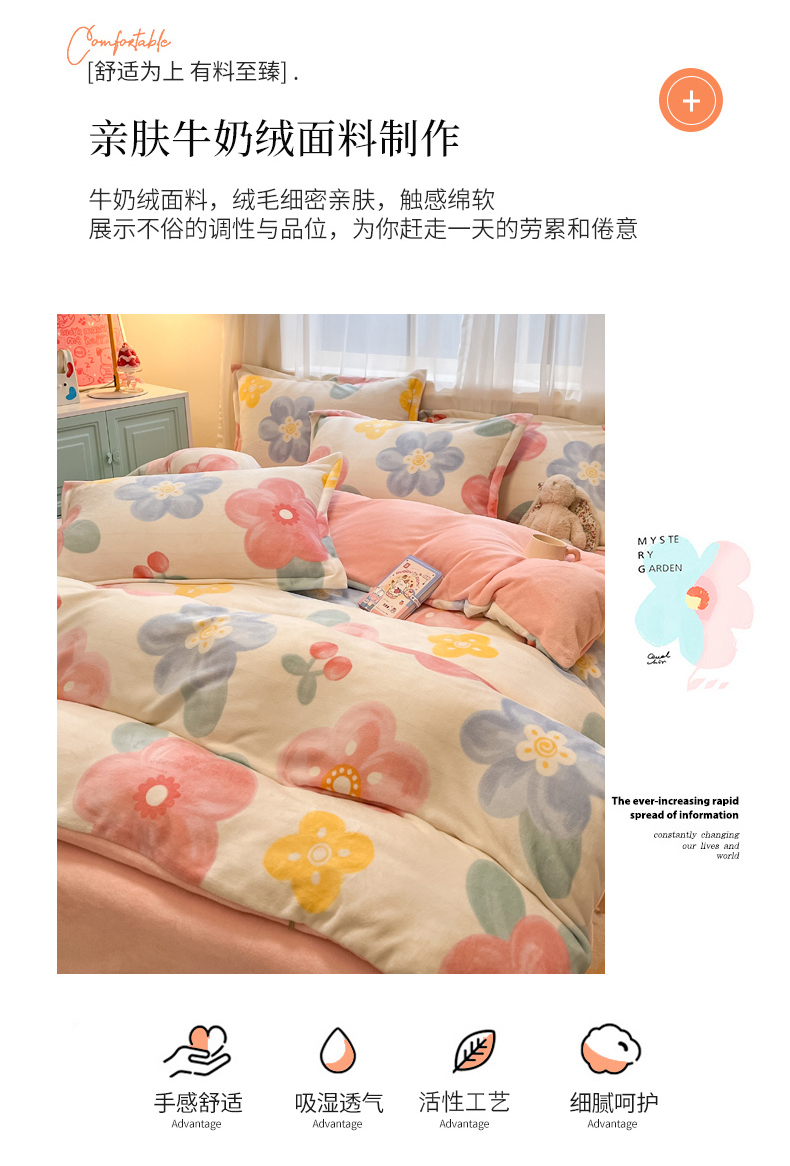 商品名称:慕尚家纺 2025新款田园花卉类印花牛奶绒高克重单被套 菲娜