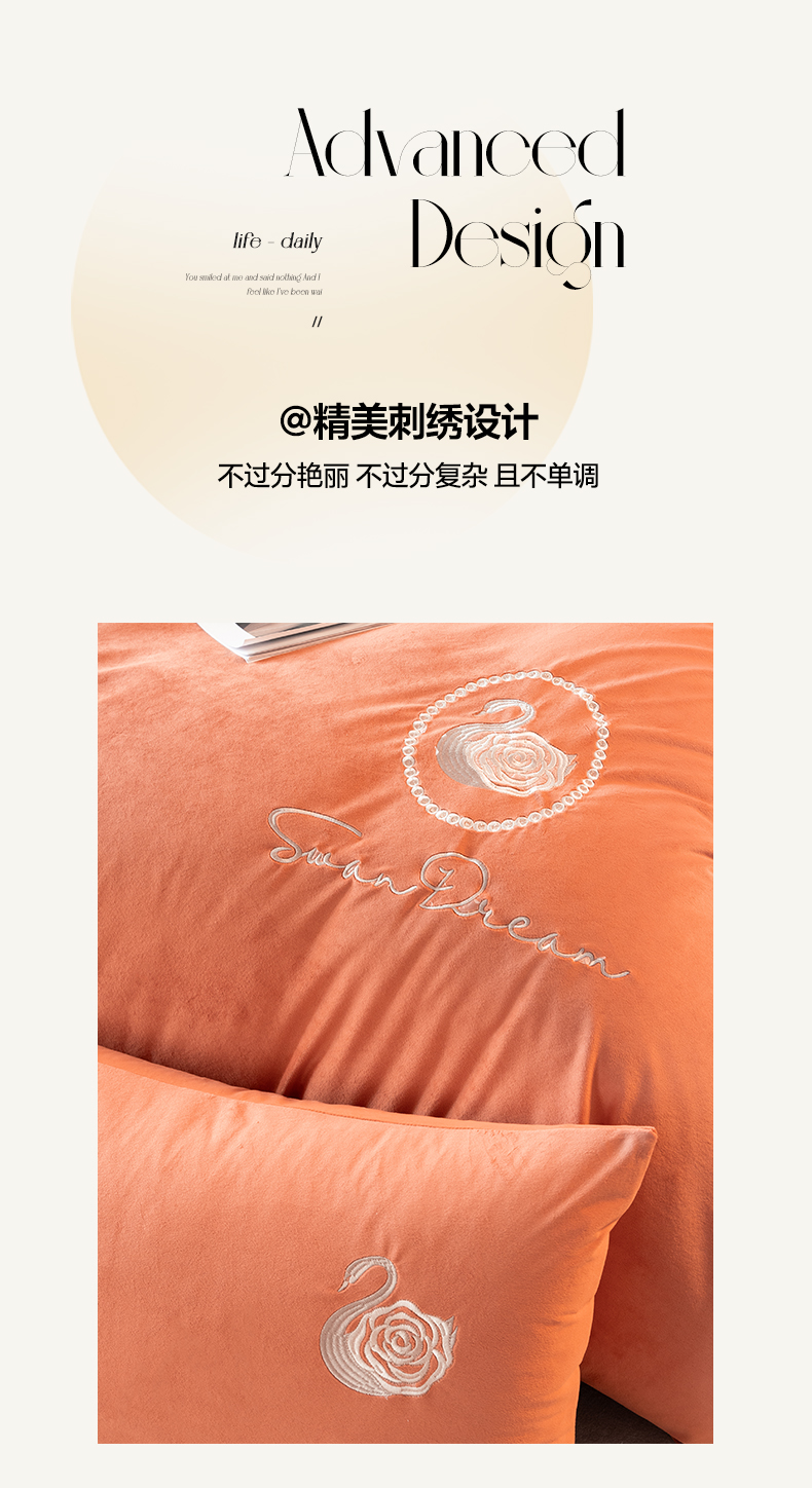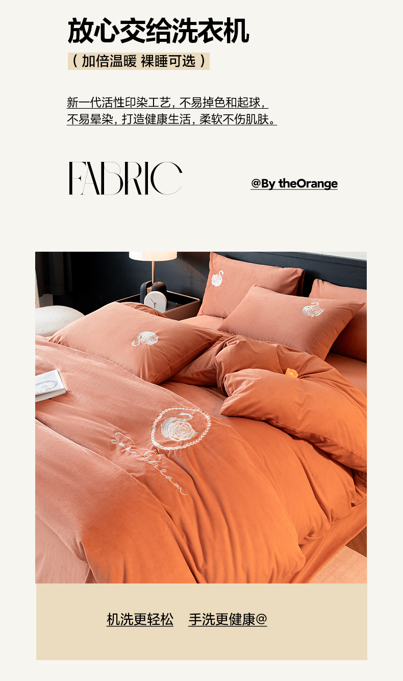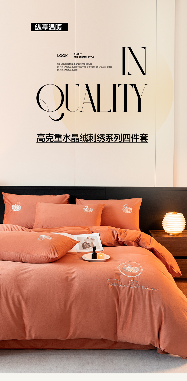 当前位置: 91家纺网 > 商品网购 > 床品套件 > 四件套 > 水晶绒四件套 > 如一 2025新款水晶绒双拼刺绣四件套-天鹅 天鹅-魅力橙