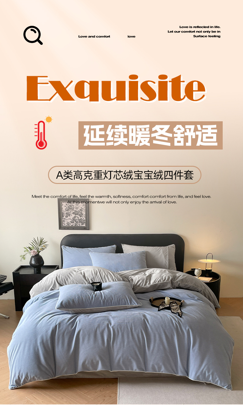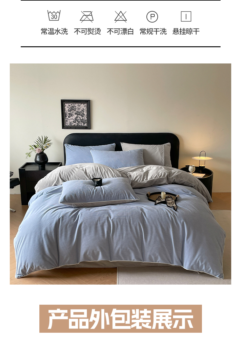 商品名称:羚羊语家纺 2025新款280克灯芯绒婴儿绒四件套高级嵌绳拼接款水晶绒宝宝绒牛奶绒床单床笠款三件套-奶芙绒系列 海风佛雾
