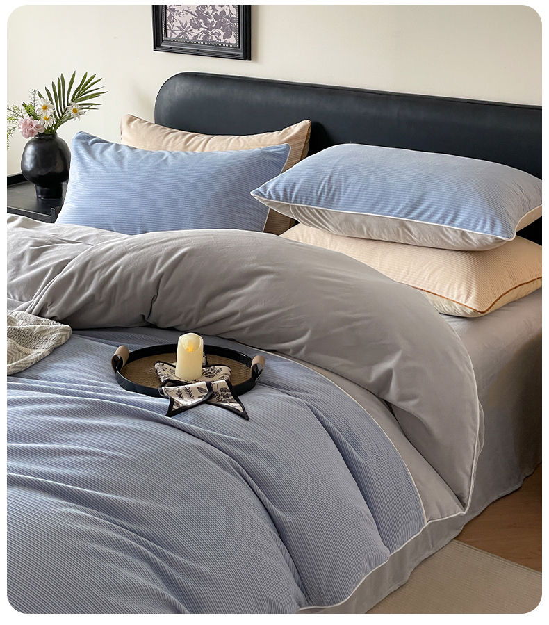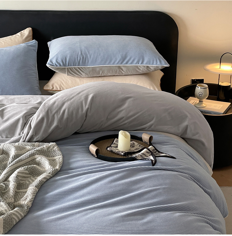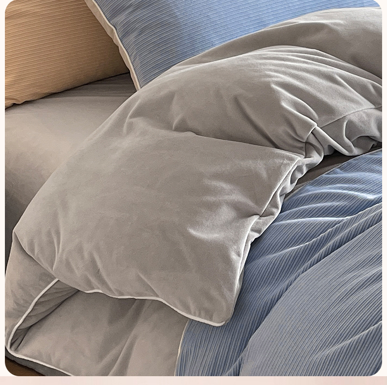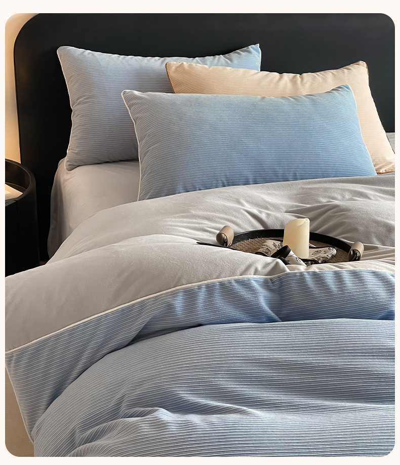 羚羊语家纺 2025新款280克灯芯绒婴儿绒四件套高级嵌绳拼接款水晶绒宝宝绒牛奶绒床单床笠款三件套-奶芙绒系列 海风佛雾