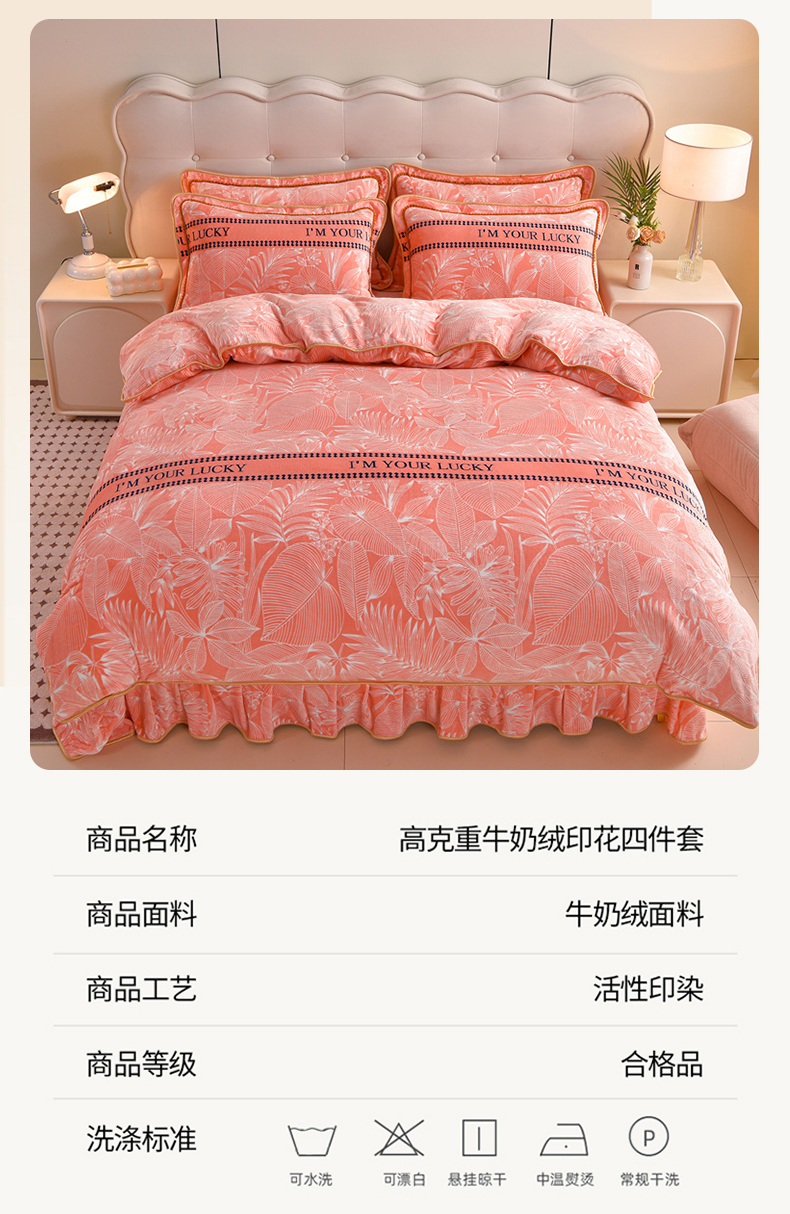 商品名称:佳一 2025新款高克重8-9斤 印花牛奶绒四件套 暖暖时光