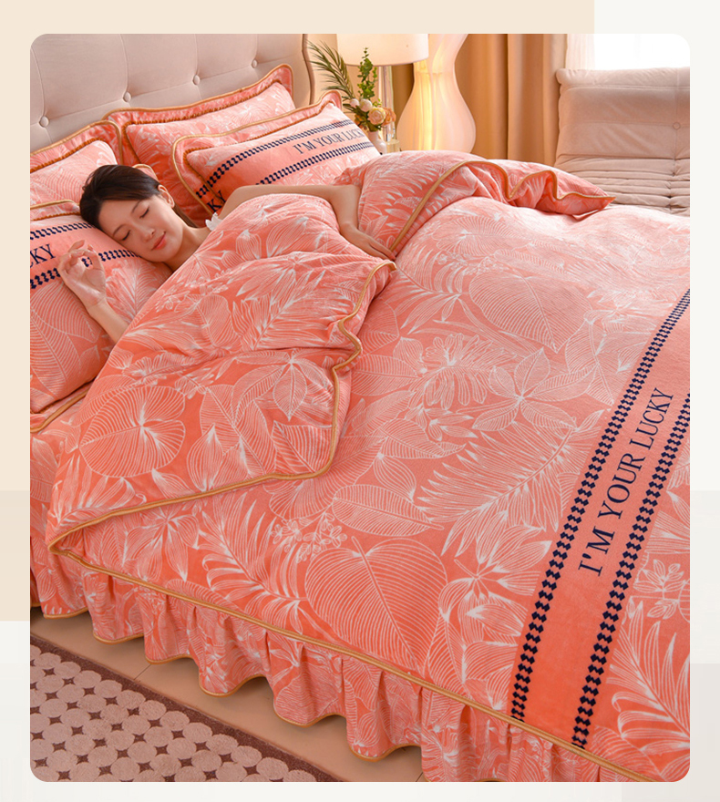 佳一 2025新款高克重8-9斤 印花牛奶绒四件套 暖暖时光