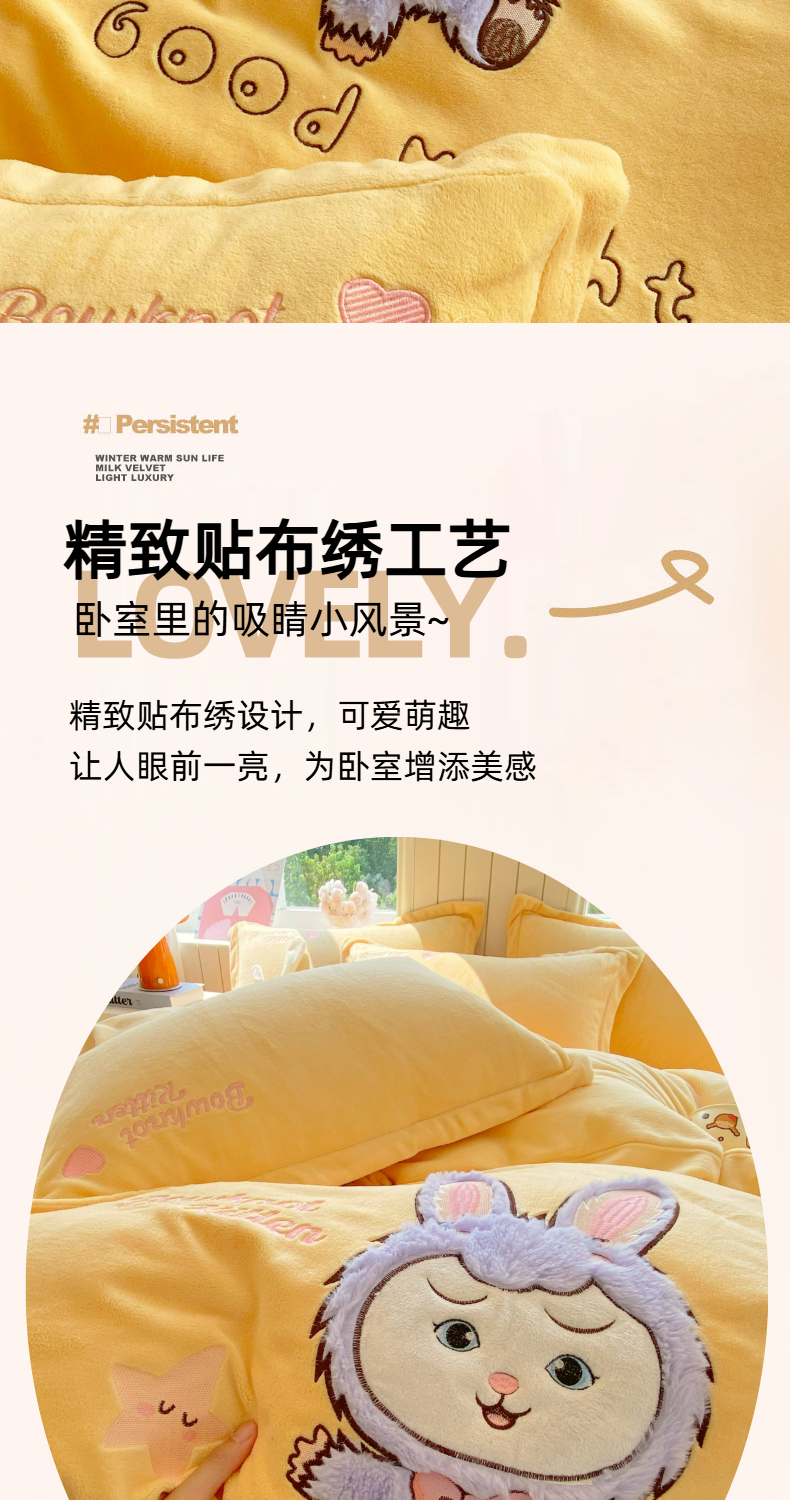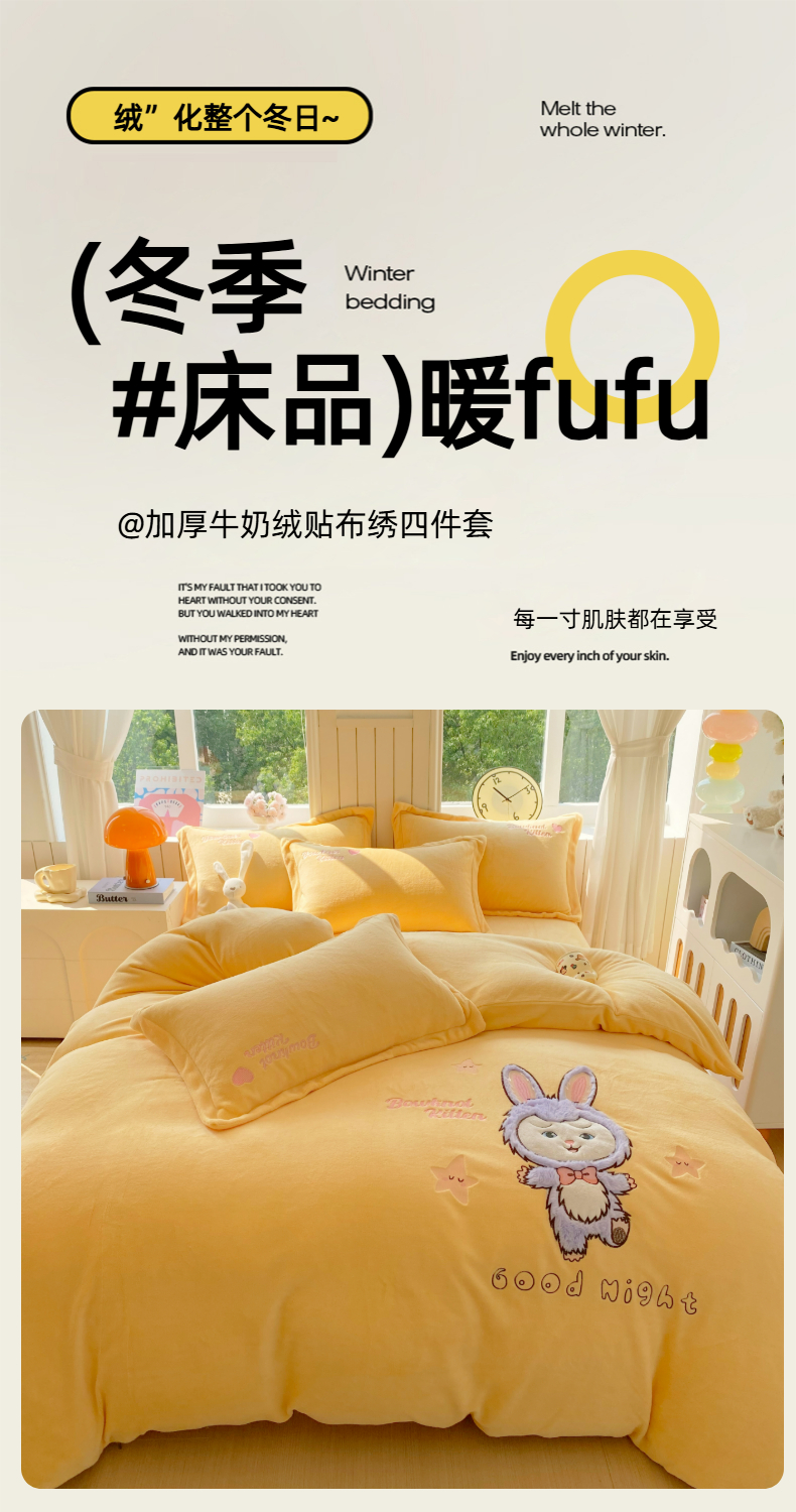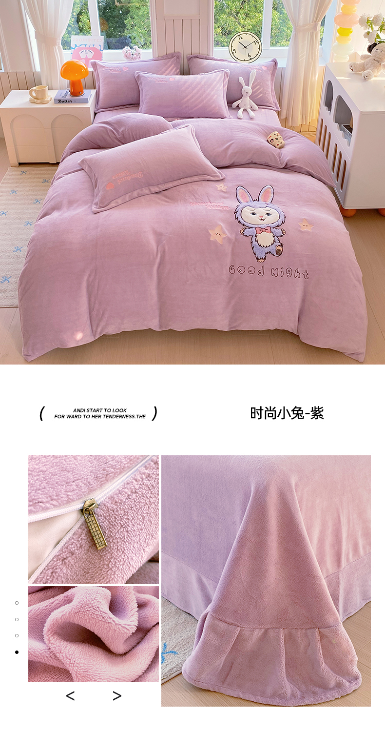 当前位置: 91家纺网 > 商品网购 > 床品套件 > 四件套 > 牛奶绒四件套 > 悦织湾家纺 牛奶绒四件套纯色贴布绣床单款床盖款床上用品四件套时尚小兔2025新款加厚 床单款时尚小兔-紫