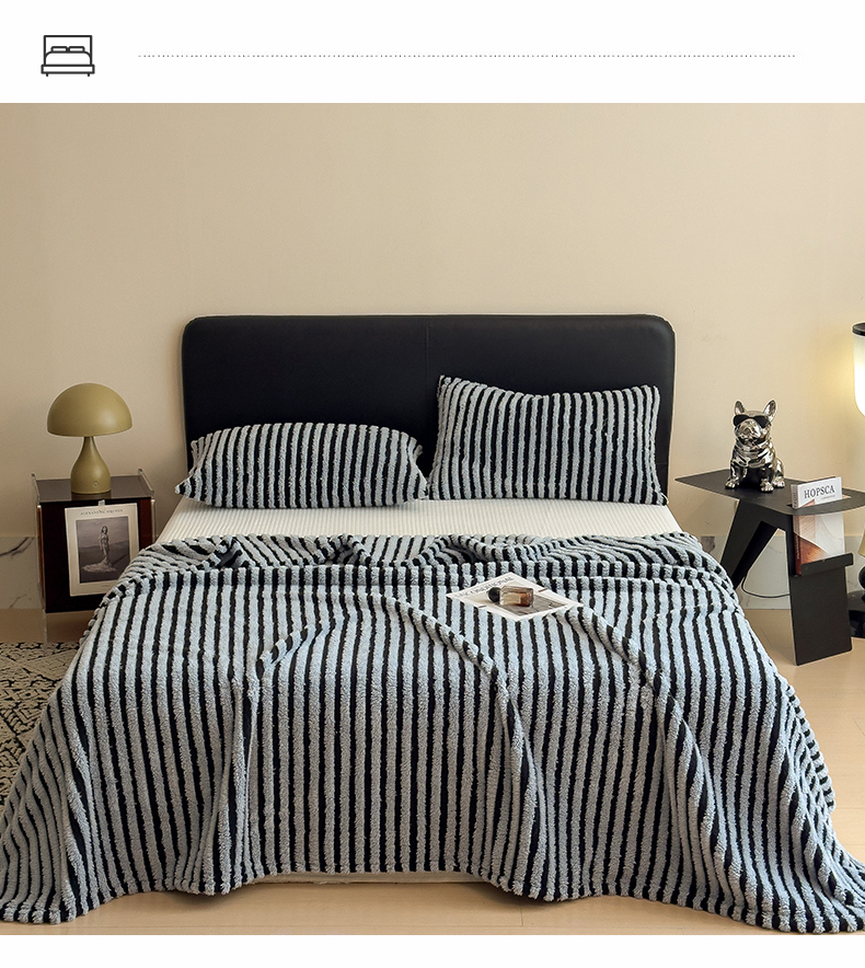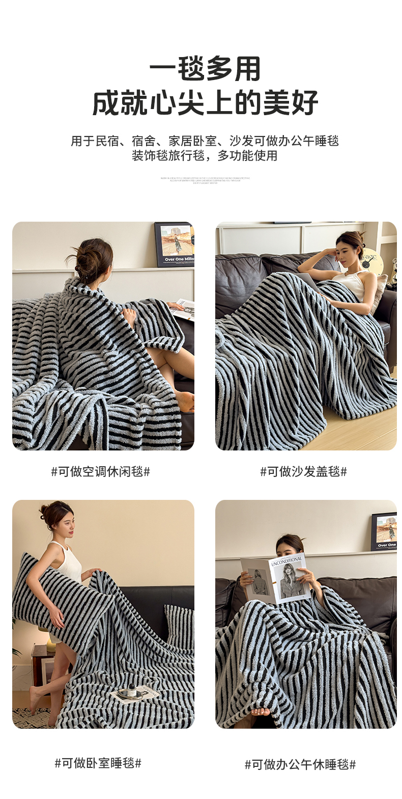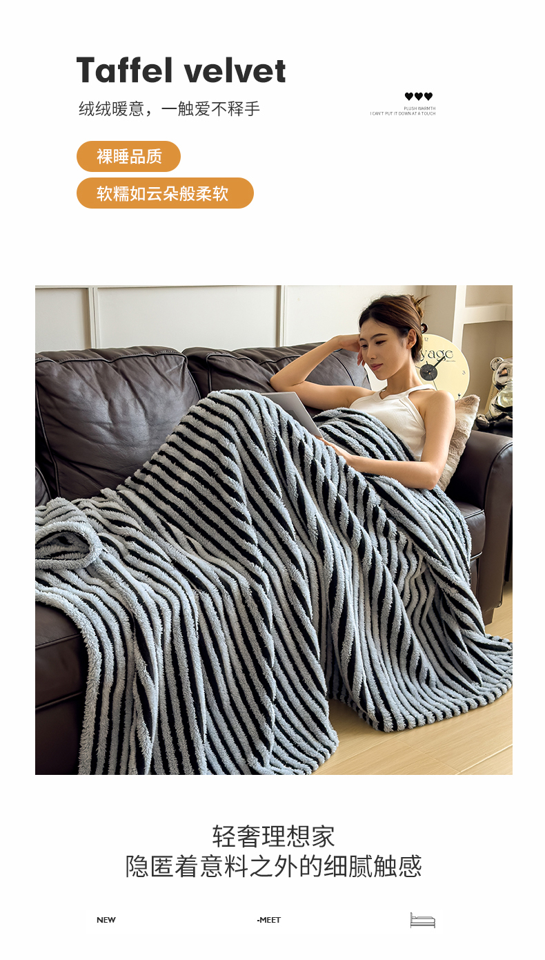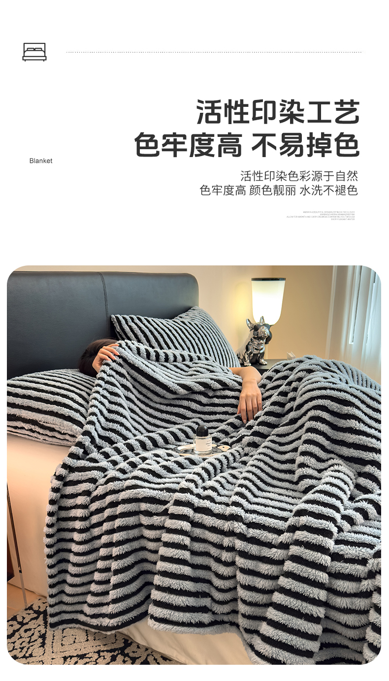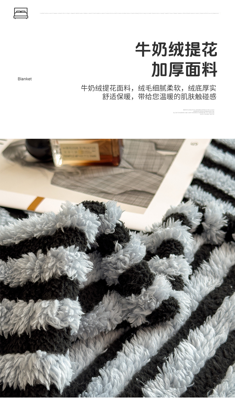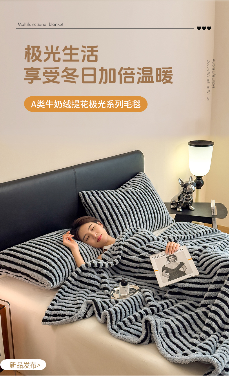 商品名称:世纪绒品 2025新款A类牛奶绒提花极光系列毛毯盖毯毯子 极光-黑蓝条