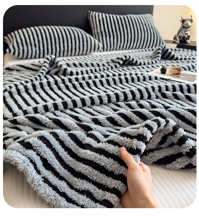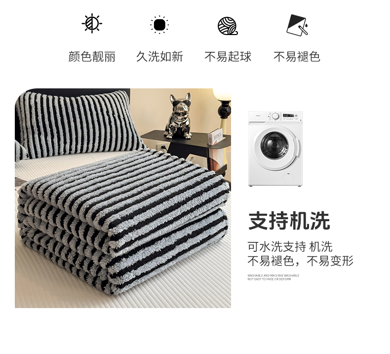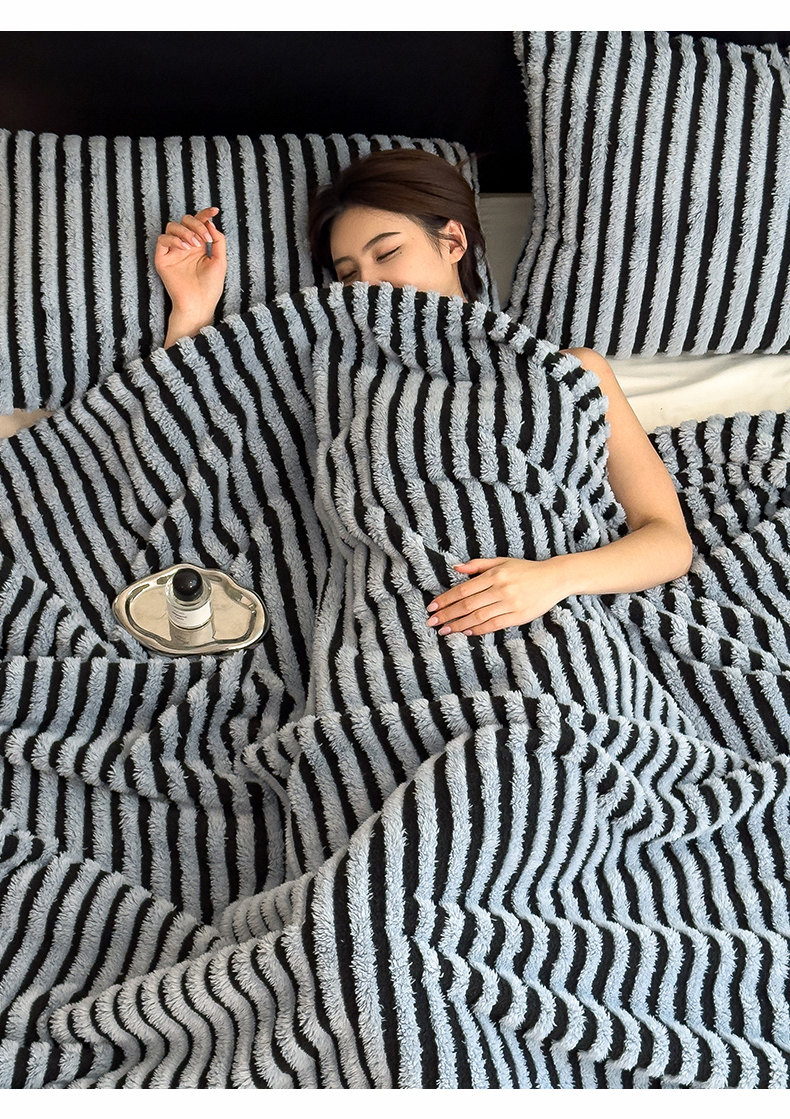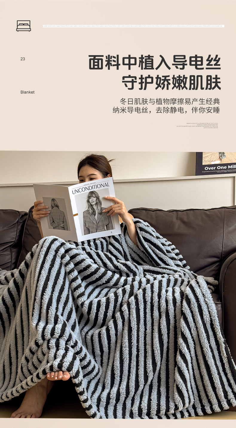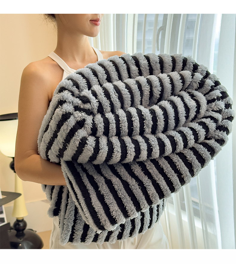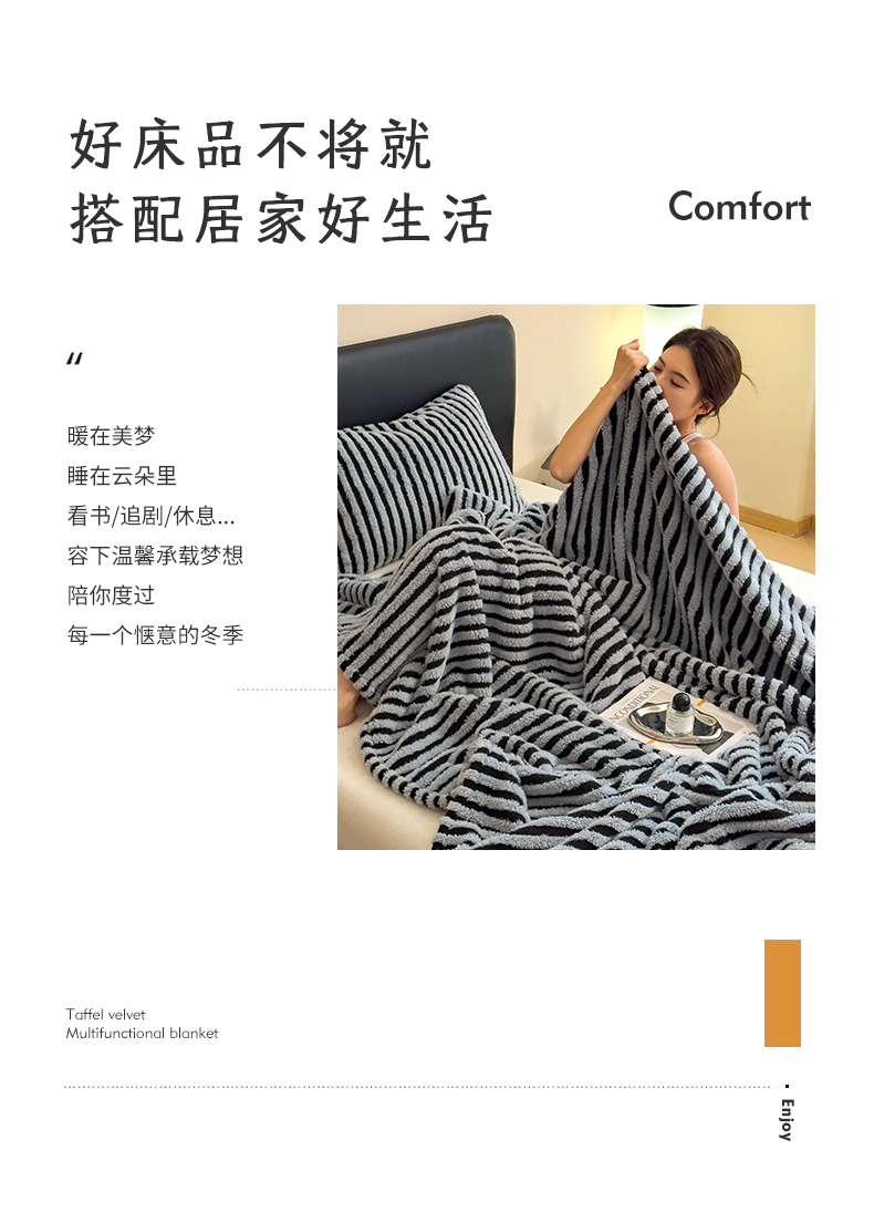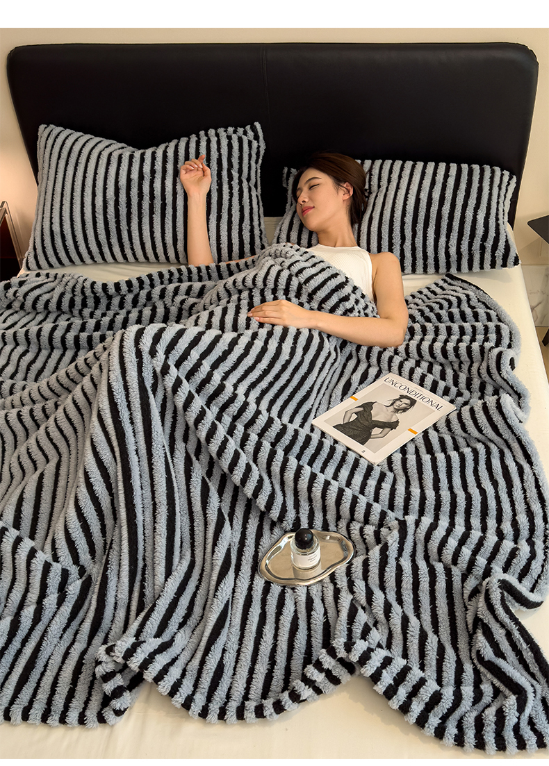 商品名称:世纪绒品 2025新款A类牛奶绒提花极光系列毛毯盖毯毯子 极光-黑蓝条