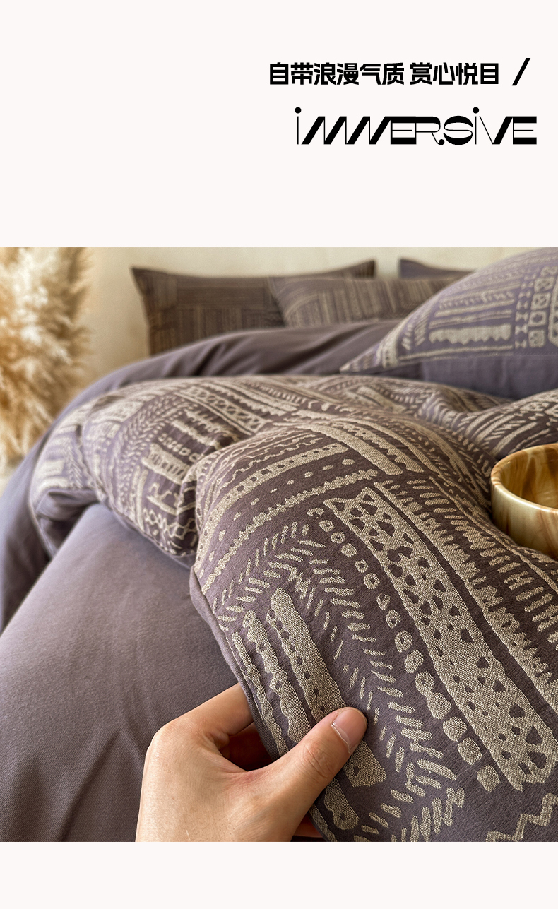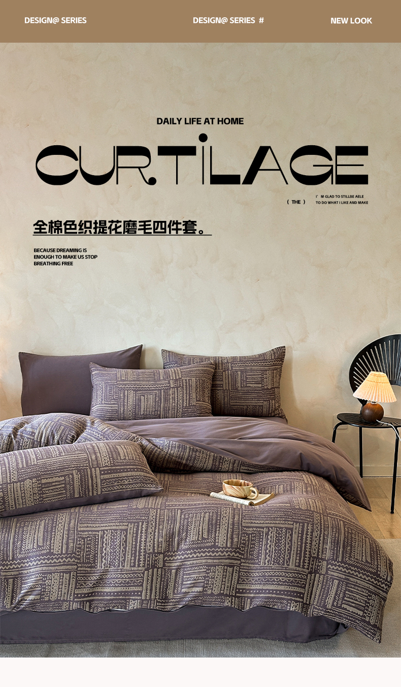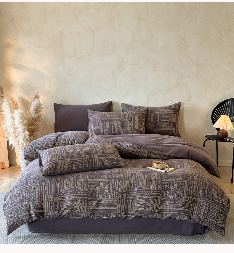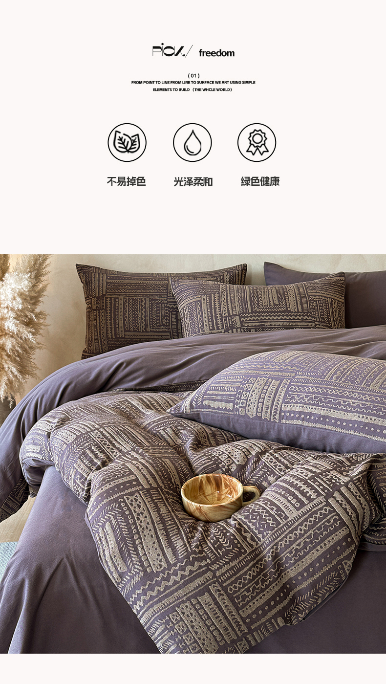 当前位置: 91家纺网 > 商品网购 > 床品套件 > 四件套 > 磨毛活性四件套 > 蓝邻家纺 2025年新款全棉色织提花磨毛四件套 曼波夏-烟紫米