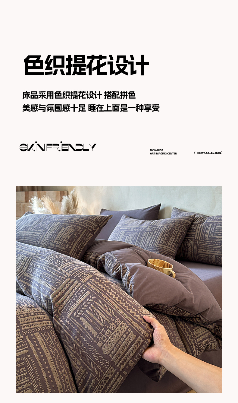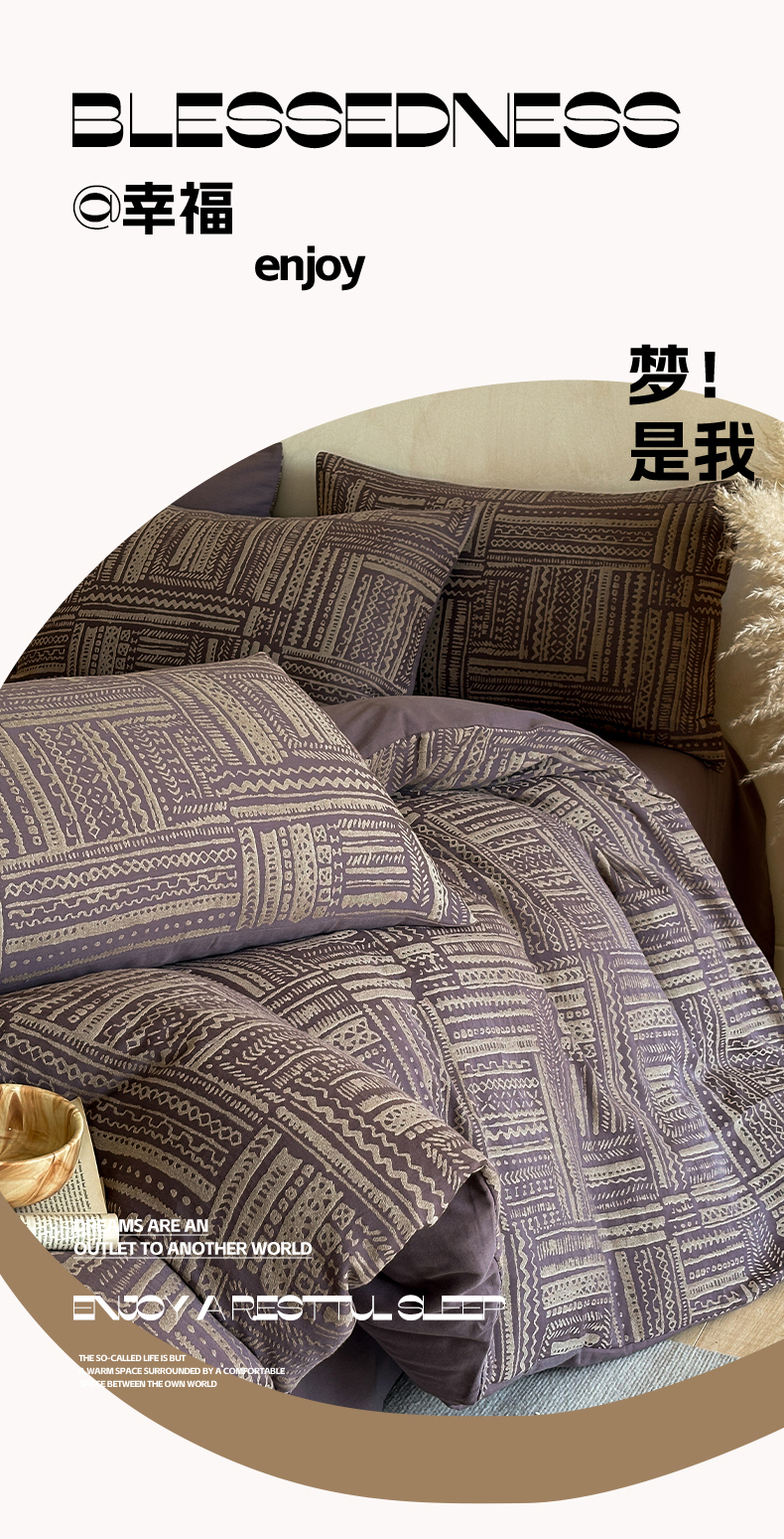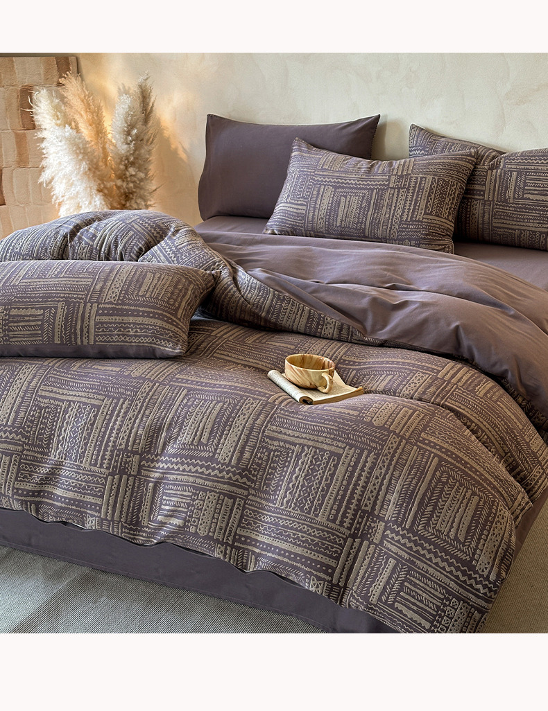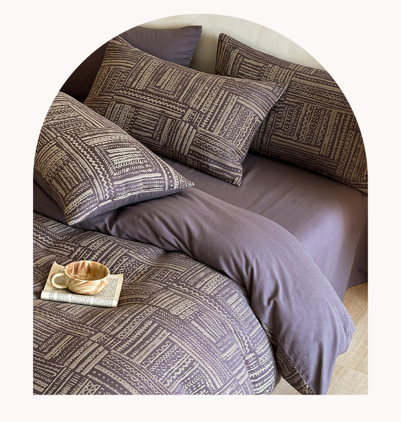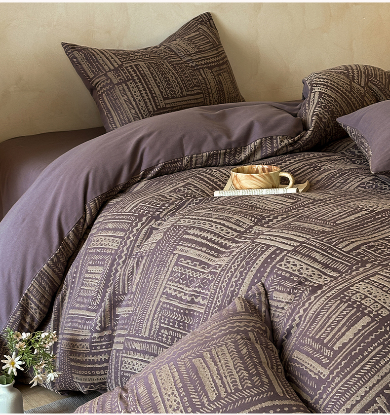 当前位置: 91家纺网 > 商品网购 > 床品套件 > 四件套 > 磨毛活性四件套 > 蓝邻家纺 2025年新款全棉色织提花磨毛四件套 曼波夏-烟紫米