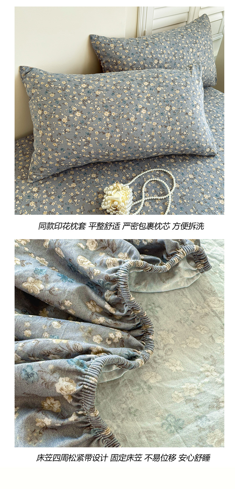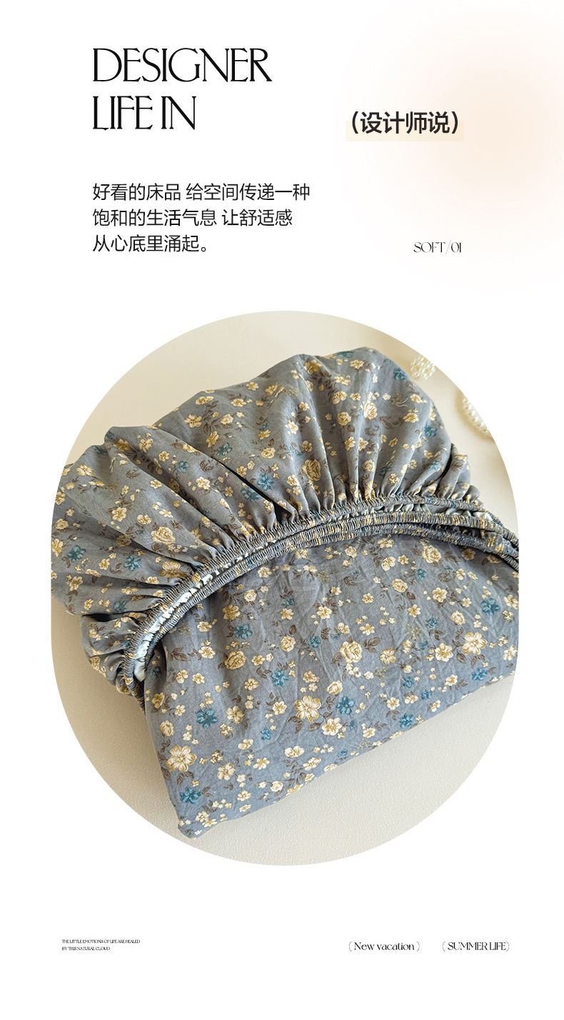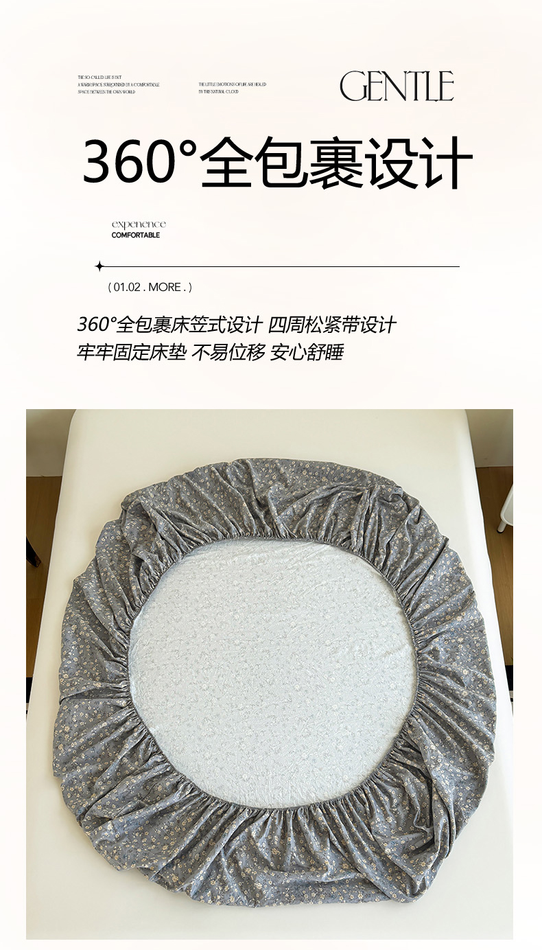 卢赛尔 2025新款水洗珍珠棉皱皱纱印花床笠 秋草-灰