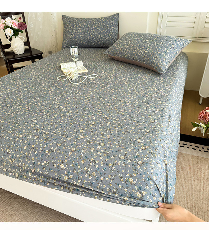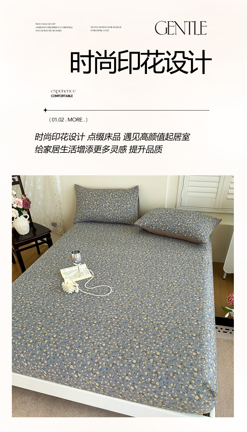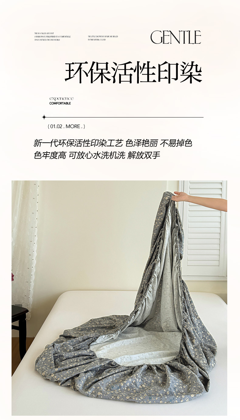 卢赛尔 2025新款水洗珍珠棉皱皱纱印花床笠 秋草-灰