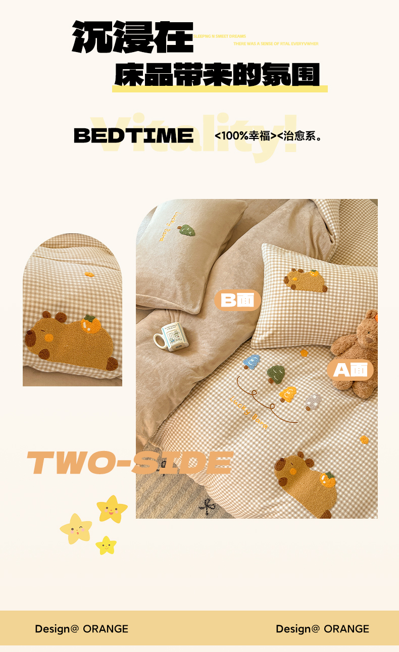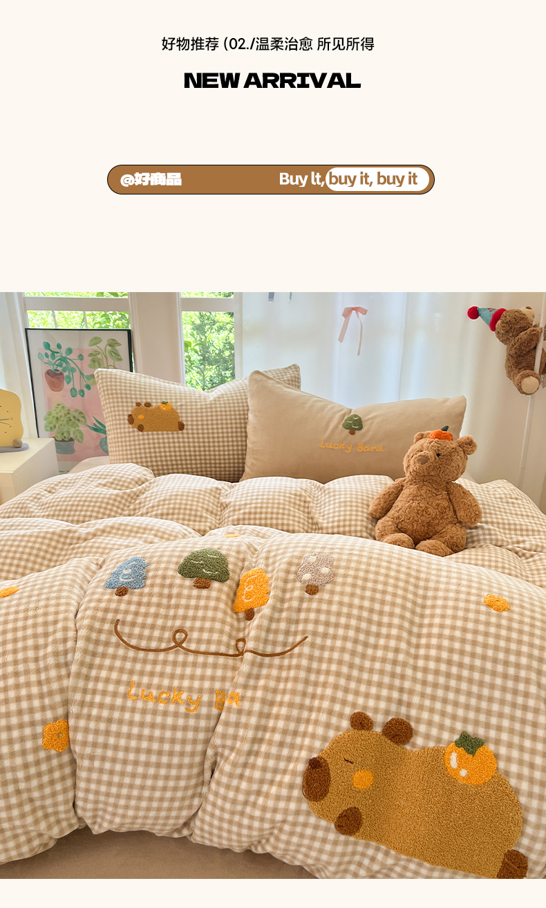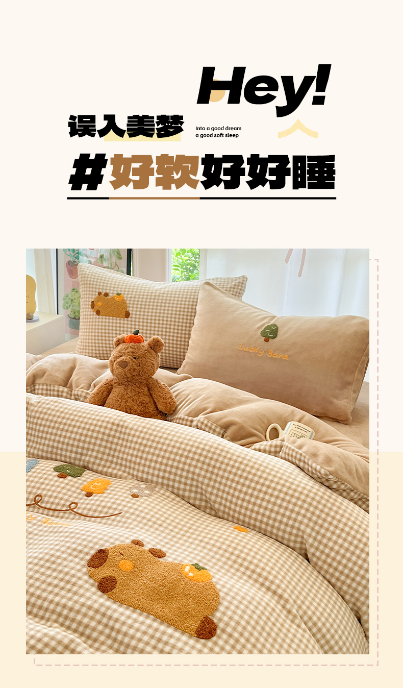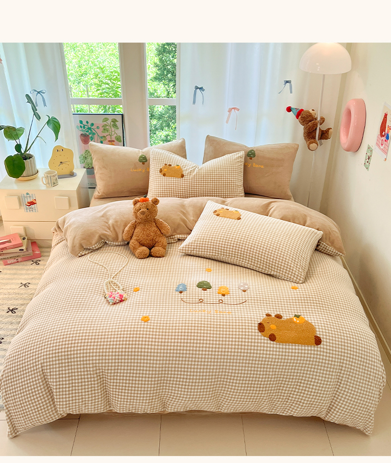 如一 2025新款卡通毛巾绣系列牛奶绒四件套第一批 卡皮柿子