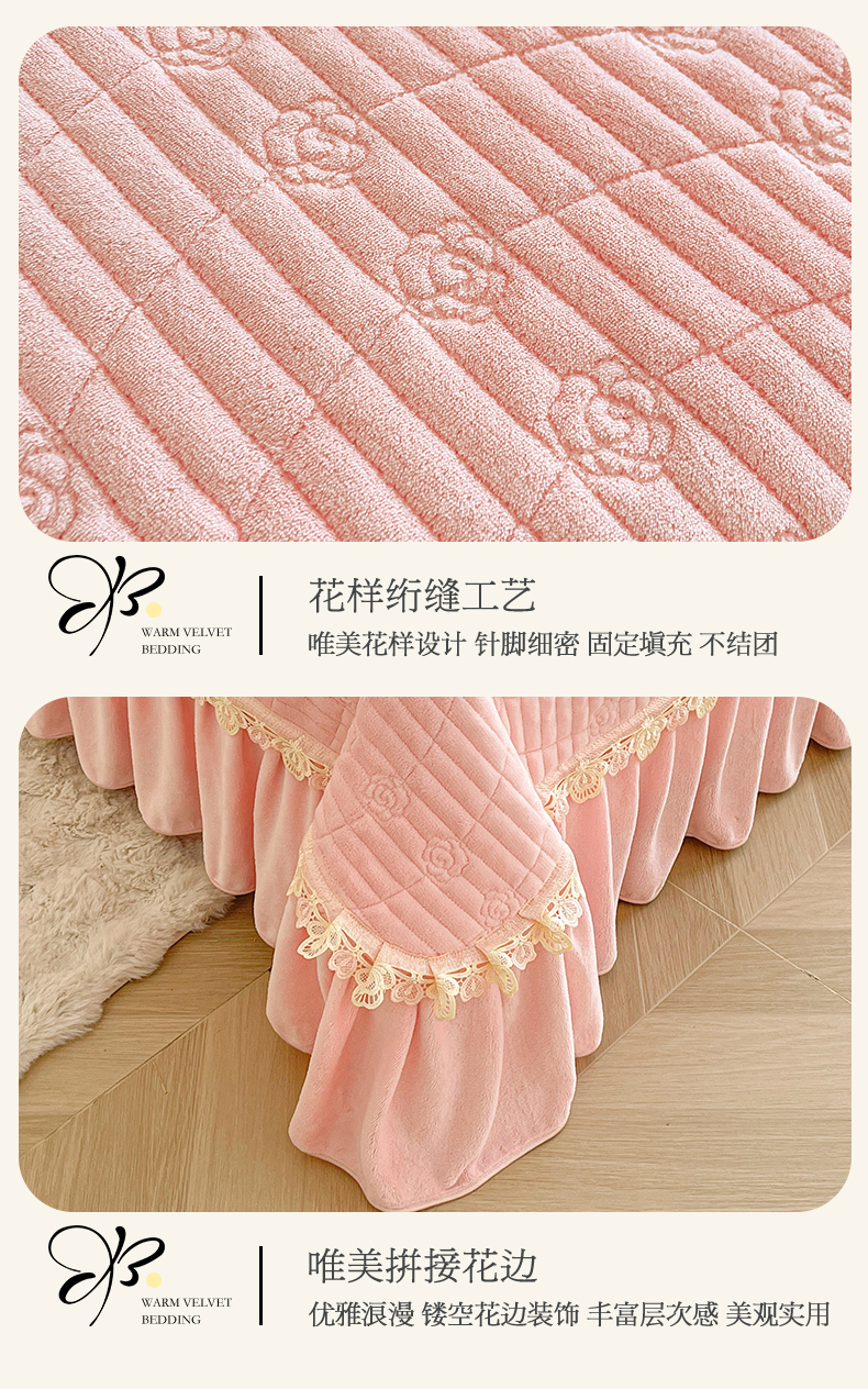 (总)宜凡家纺 2025新款兔绒提花牛奶绒夹棉床裙四件套,爱心 少女粉,爱心 粉紫,爱心 驼色,蝶舞 大红,蝶舞 米色,蝶舞 浅紫,蝶舞 玉色,简爱 苍青,简爱 豆沙紫,简爱 玉色,樱桃 苍青,樱桃 豆沙紫,樱桃 奶油白
