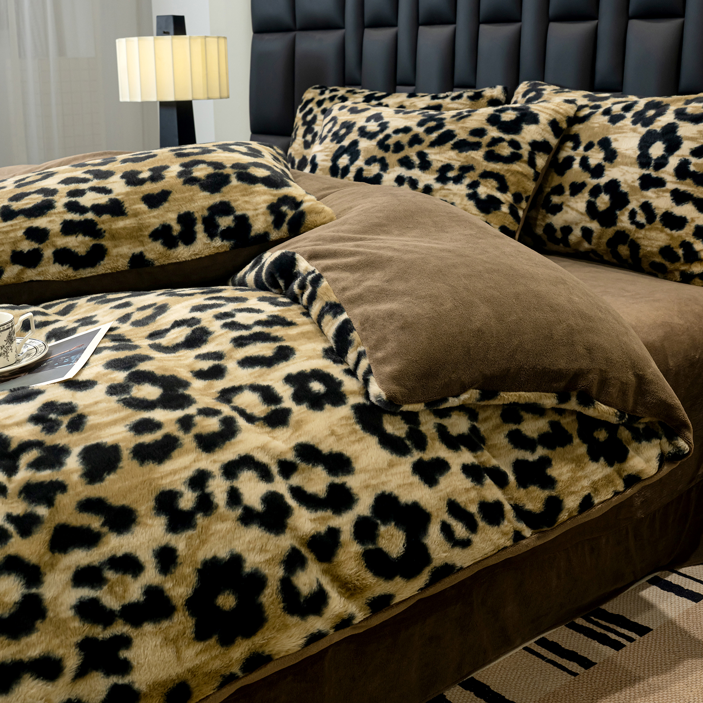 商品名称:豫见家纺 2025新款法式美拉德高克重兔毛床单款四件套兔毛简单款 豹纹灰