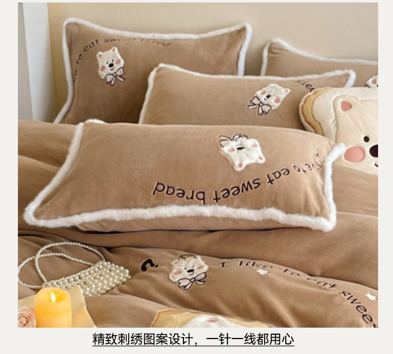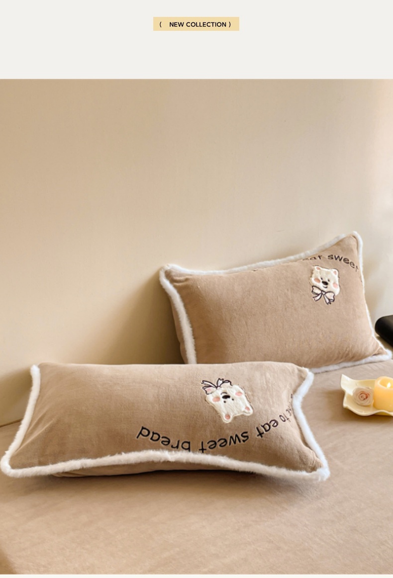 商品名称:梦舒羽 2025新款A类230克全消光刺绣贴布牛奶绒枕套宿舍枕芯套单人枕头套一对装 吐司萌宠-实力咖