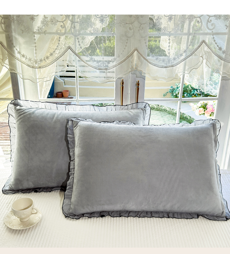 • 91家纺网 家纺一手货源 找家纺 呦呦南宋 2025新款韩版35x55cm针织绒枕套双面两用绣线花边中层超声波夹棉单只装单品隐藏拉链款枕头套 清雅粉