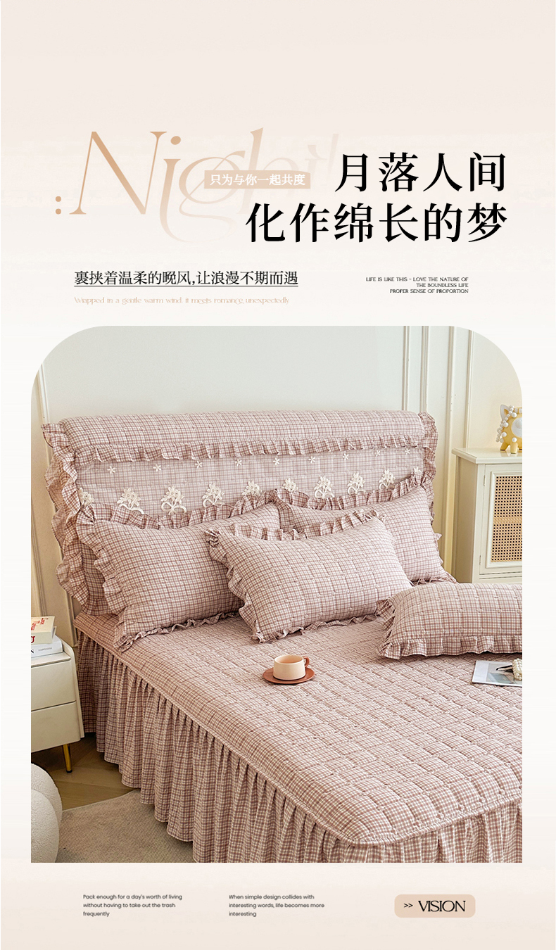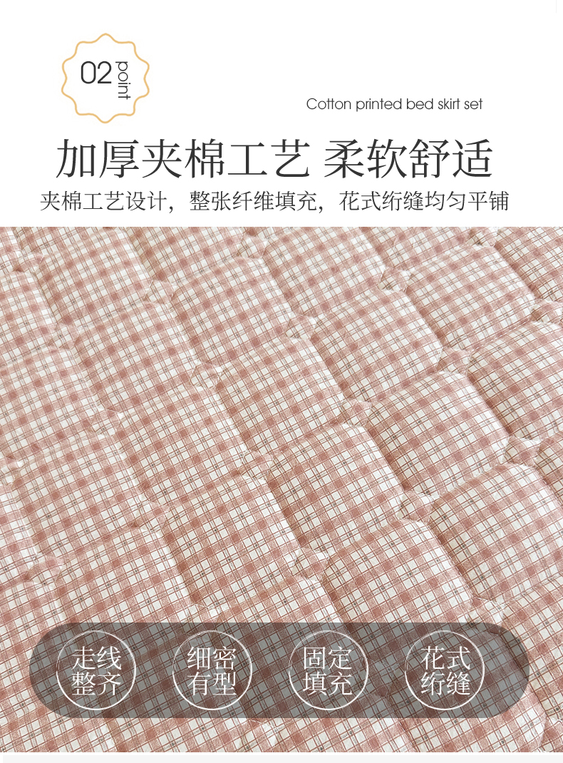 (总)十个点家纺 2025新款加厚磨毛木棉床裙三件套-格小格系列,格小格-粉,格小格-金驼,格小格-咖,格小格-兰,格小格-绿,格小格-玉