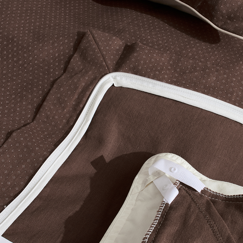 当前位置: 91家纺网 > 商品网购 > 床品套件 > 四件套 > 其它四件套 > LADYCOCO可可家居 2025新款三开口针织+梭织 夹棉四件套 优易套/U易套 三开口被套,唯一专利发明单位,全球专利布局 双层纱 印花咖色