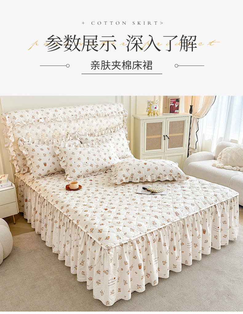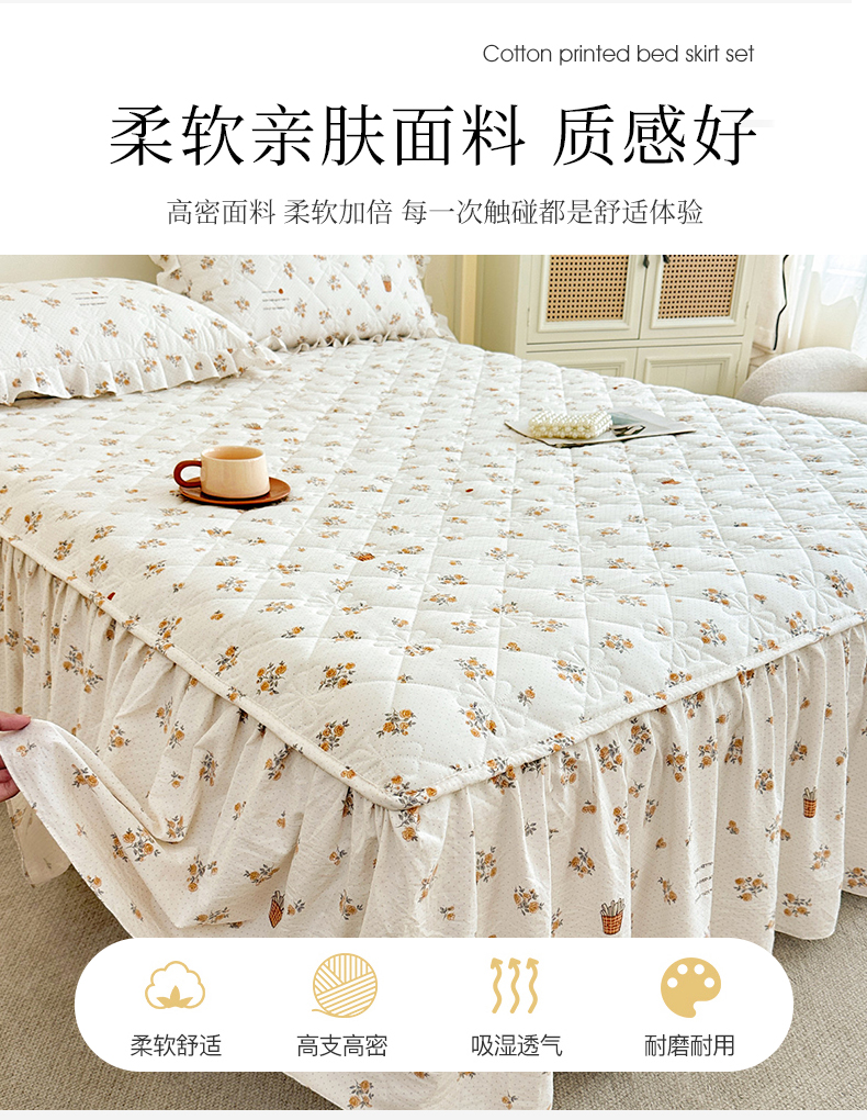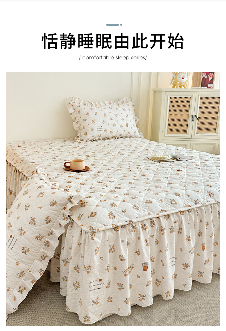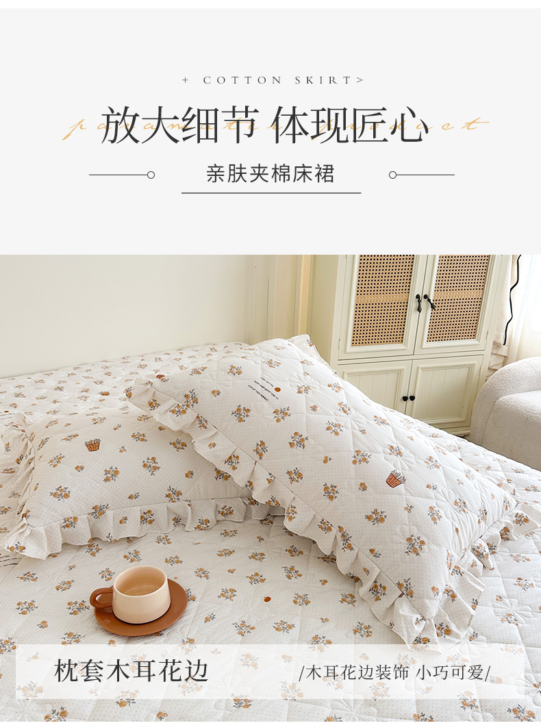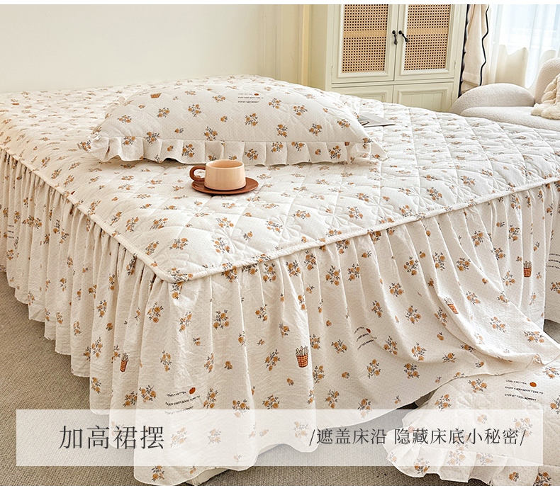 商品名称:十个点家纺 2025新款加厚磨毛木棉床裙三件套-绫罗系列 木棉花