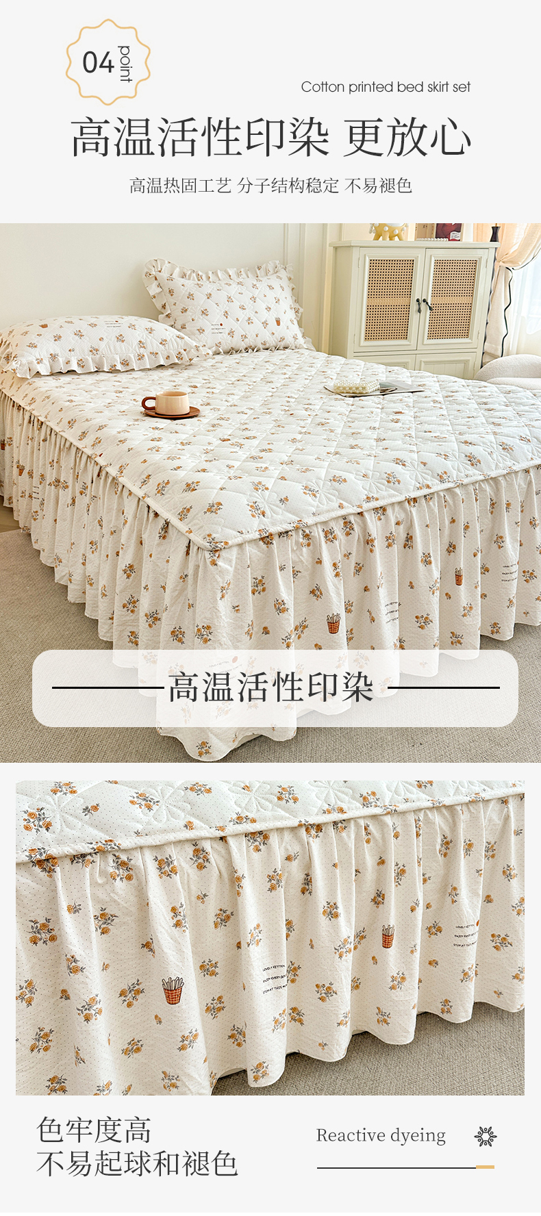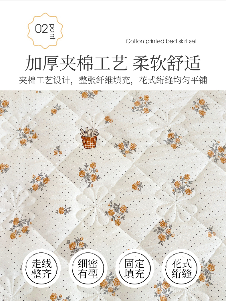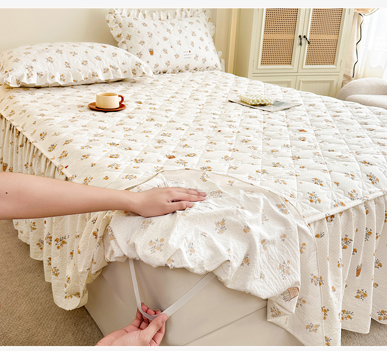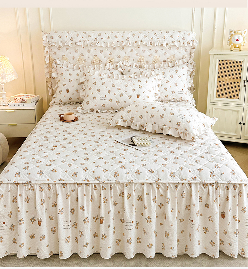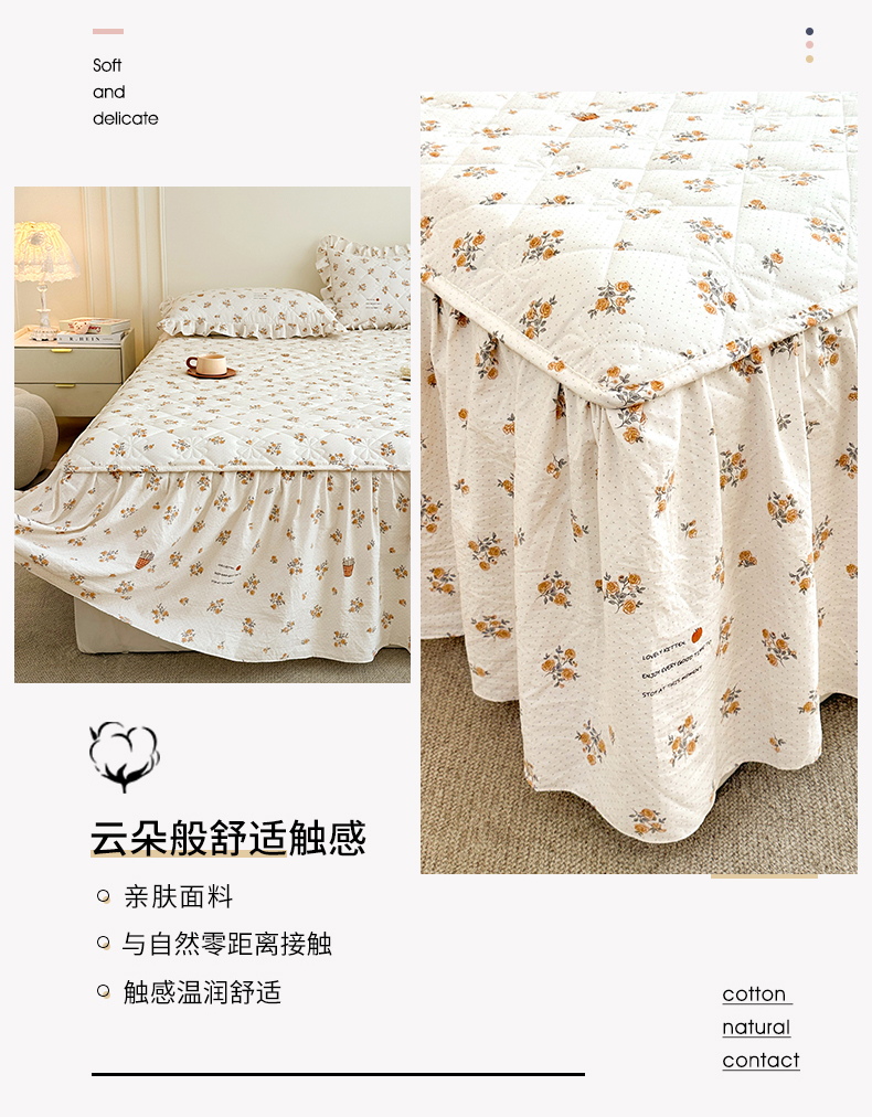 商品名称:十个点家纺 2025新款加厚磨毛木棉床裙三件套-绫罗系列 木棉花