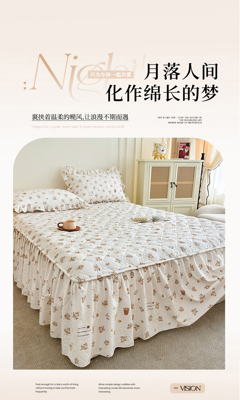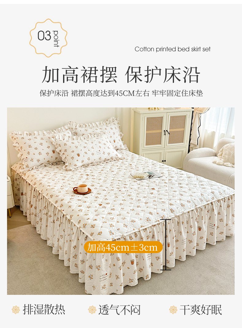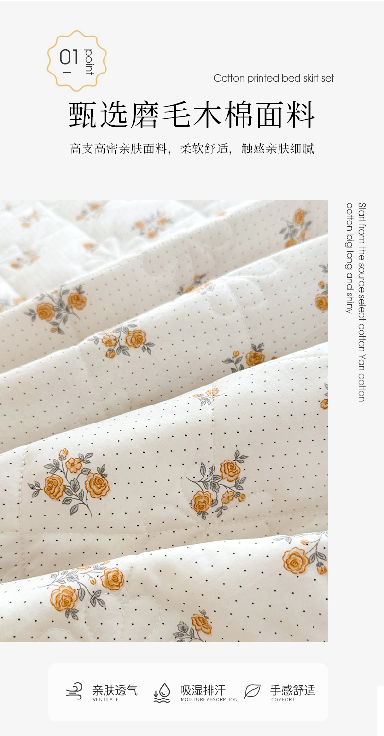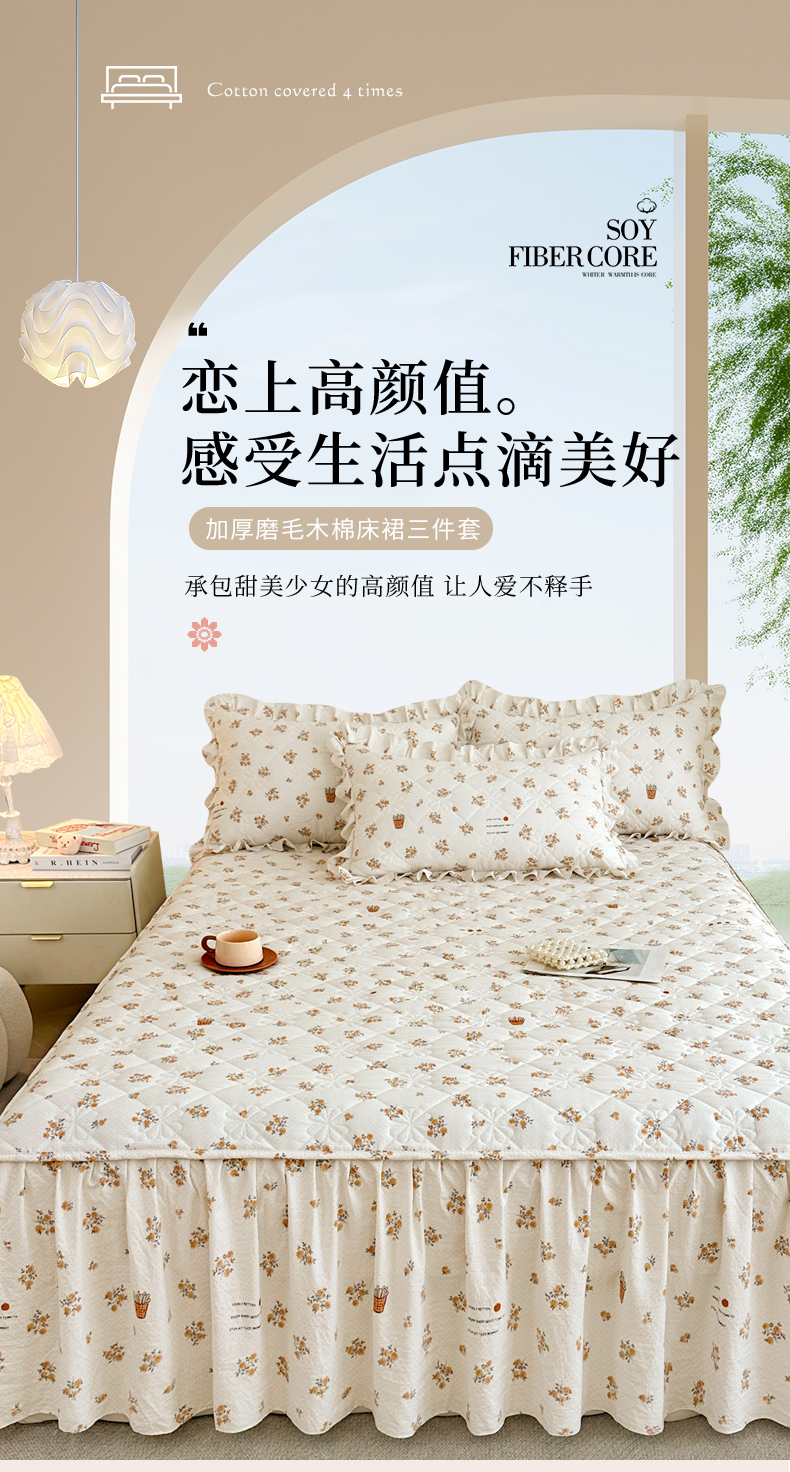 十个点家纺 2025新款加厚磨毛木棉床裙三件套-绫罗系列 木棉花