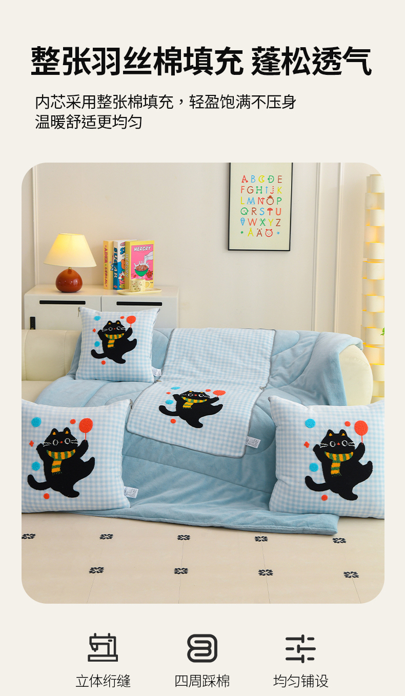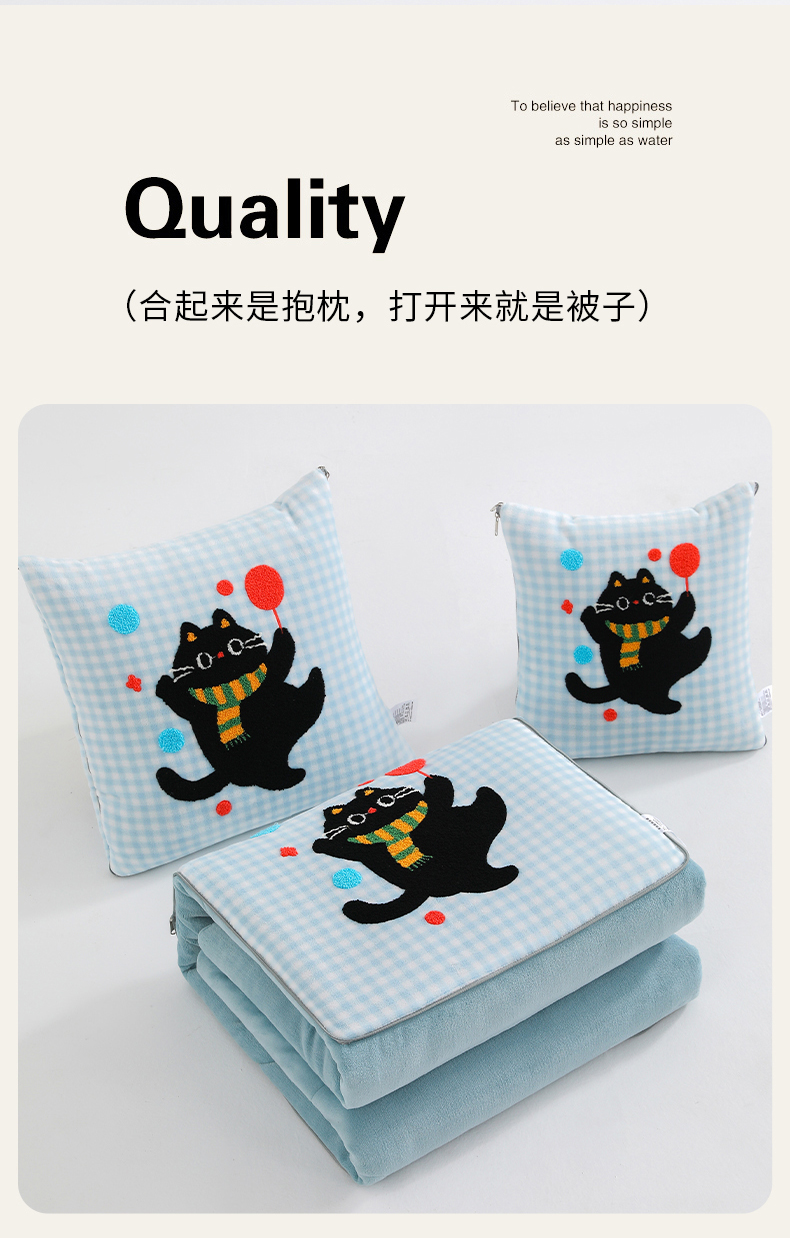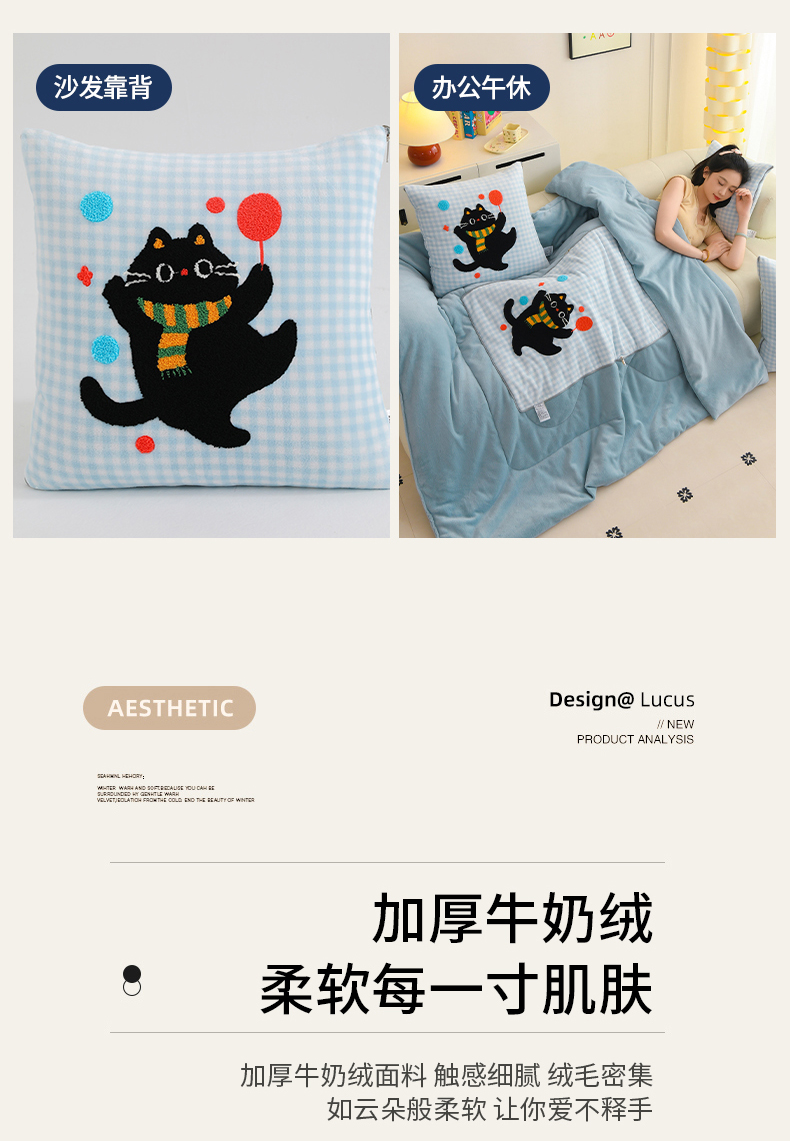 商品名称:翰轩家居 2025新款卡通牛奶绒抱枕被毛巾绣系列 气球猫-蓝