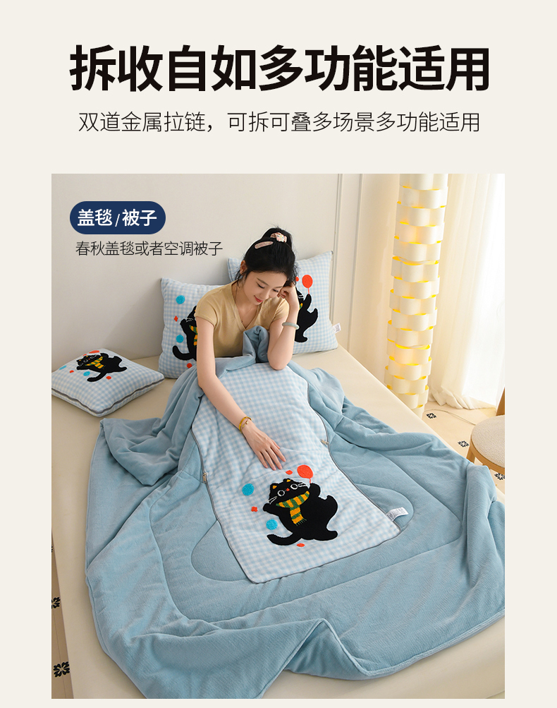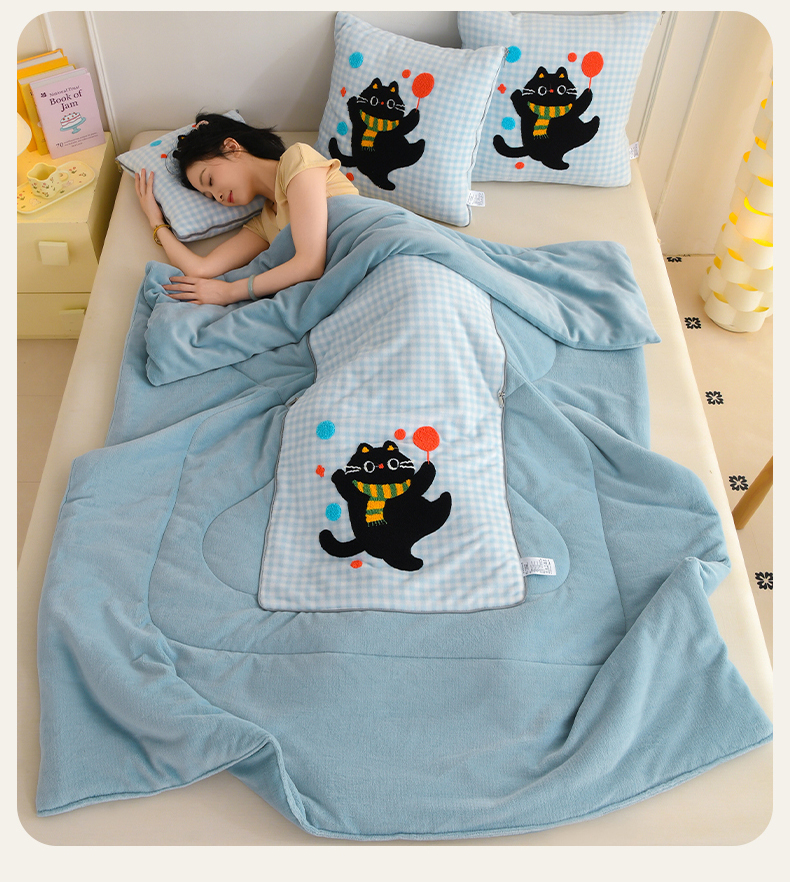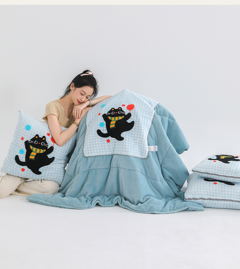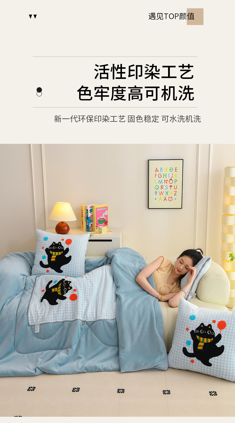 商品名称:翰轩家居 2025新款卡通牛奶绒抱枕被毛巾绣系列 气球猫-蓝