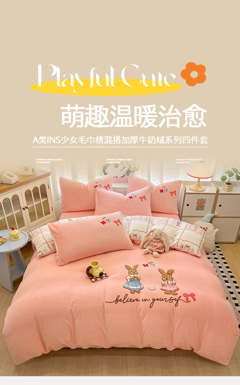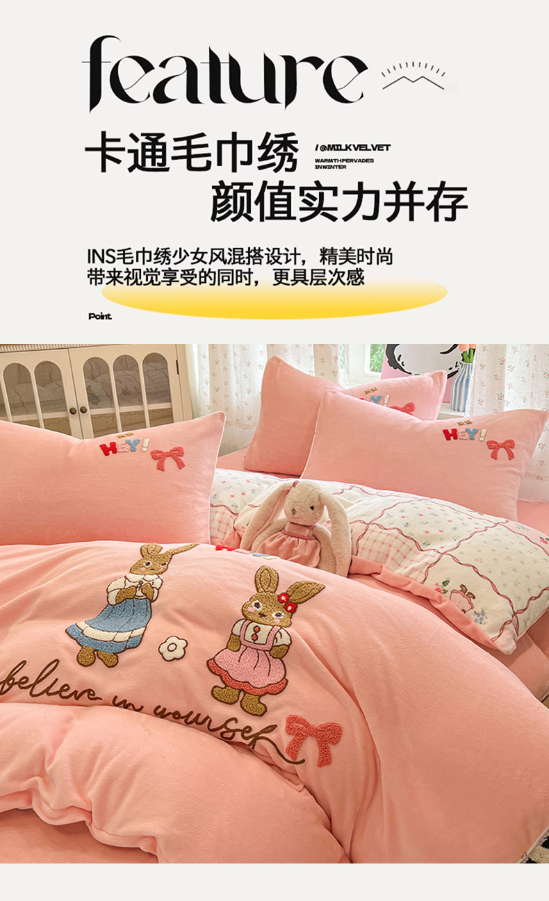 当前位置: 91家纺网 > 商品网购 > 床品套件 > 四件套 > 牛奶绒四件套 > 眠博士 2025新款牛奶绒毛巾绣四件套 牛奶绒毛巾绣-兔兔