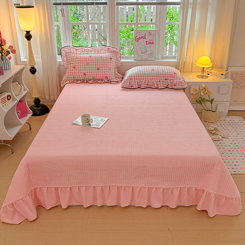 (总)梦莱斯2025新款皱皱棉学生款床盖三件套,波点粉,波点黄,波点咖,波点蓝,波点紫,法式少女,花海绿,简夕米,蓝格子,罗格先生咖,罗格先生蓝,迷你格灰,迷你格米,珊瑚海粉,水墨嫣然,往事黄,往事咖,至尚