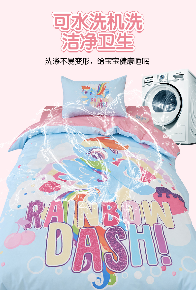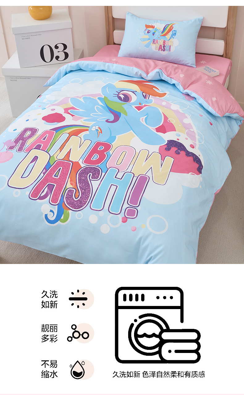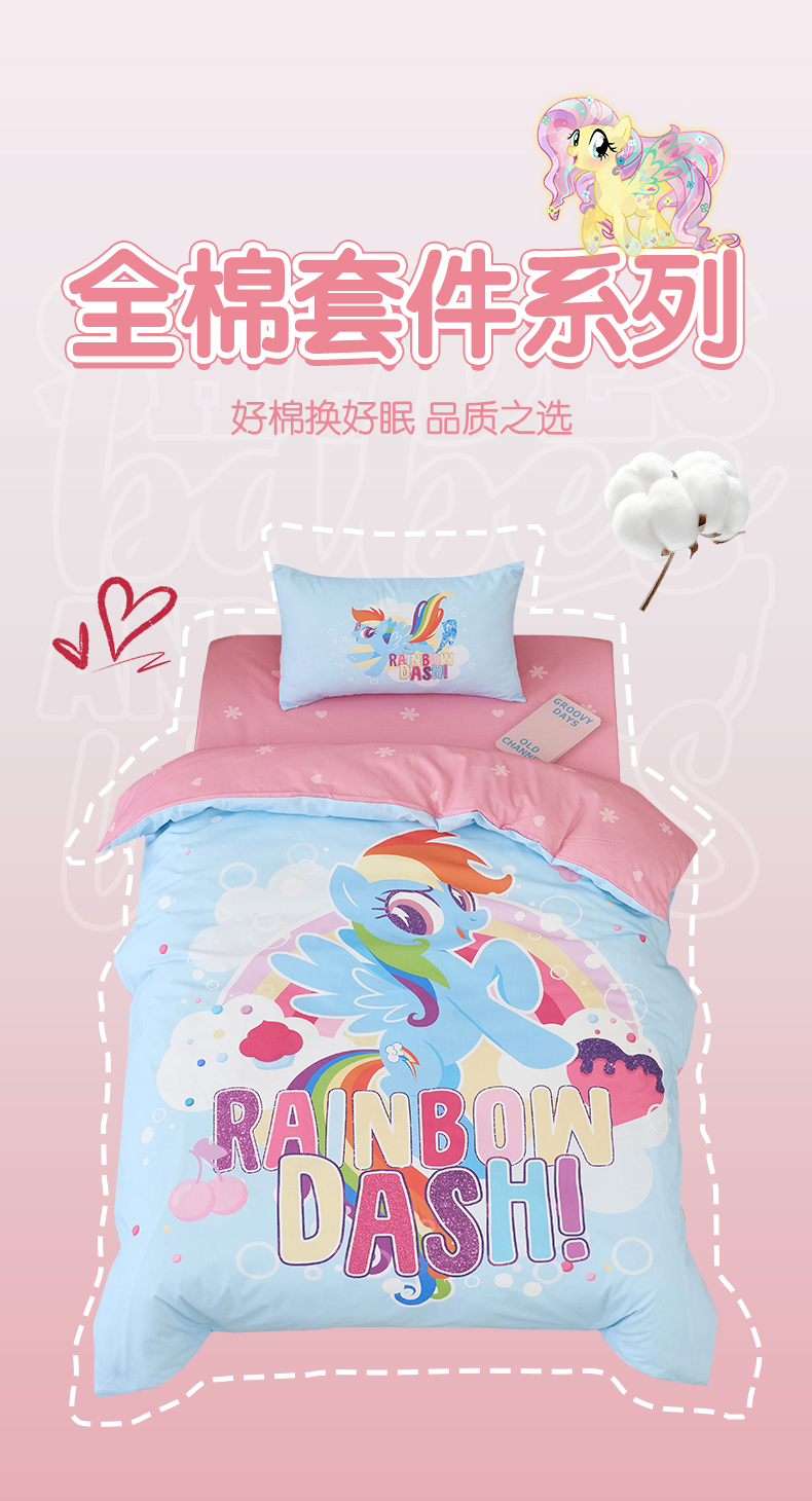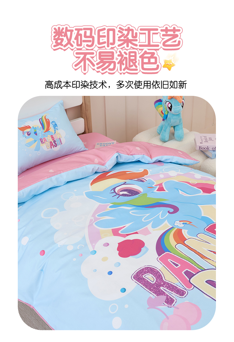 商品名称:百利卡通(原迪士尼家纺) 2025新款正版授权小马宝莉全棉数码印花幼儿园童被套装 蓝色云宝T