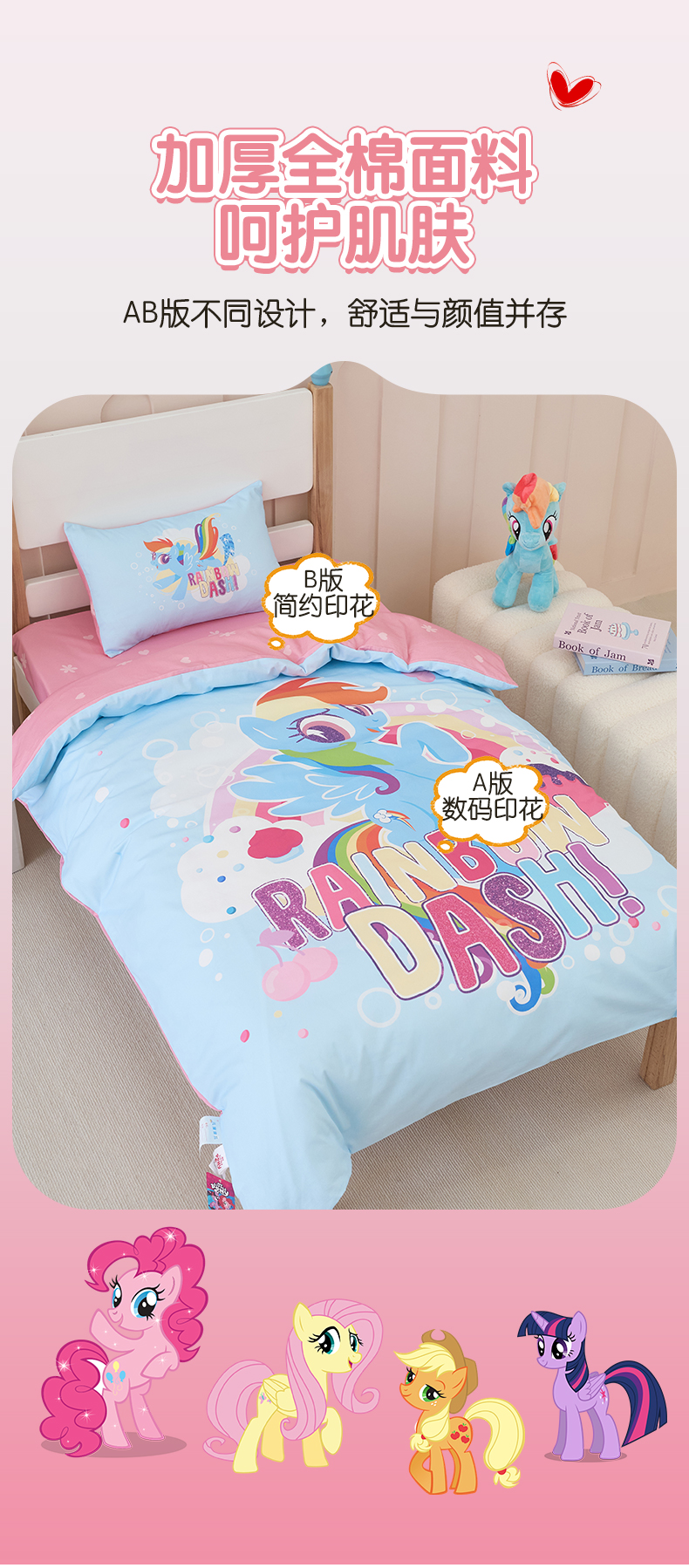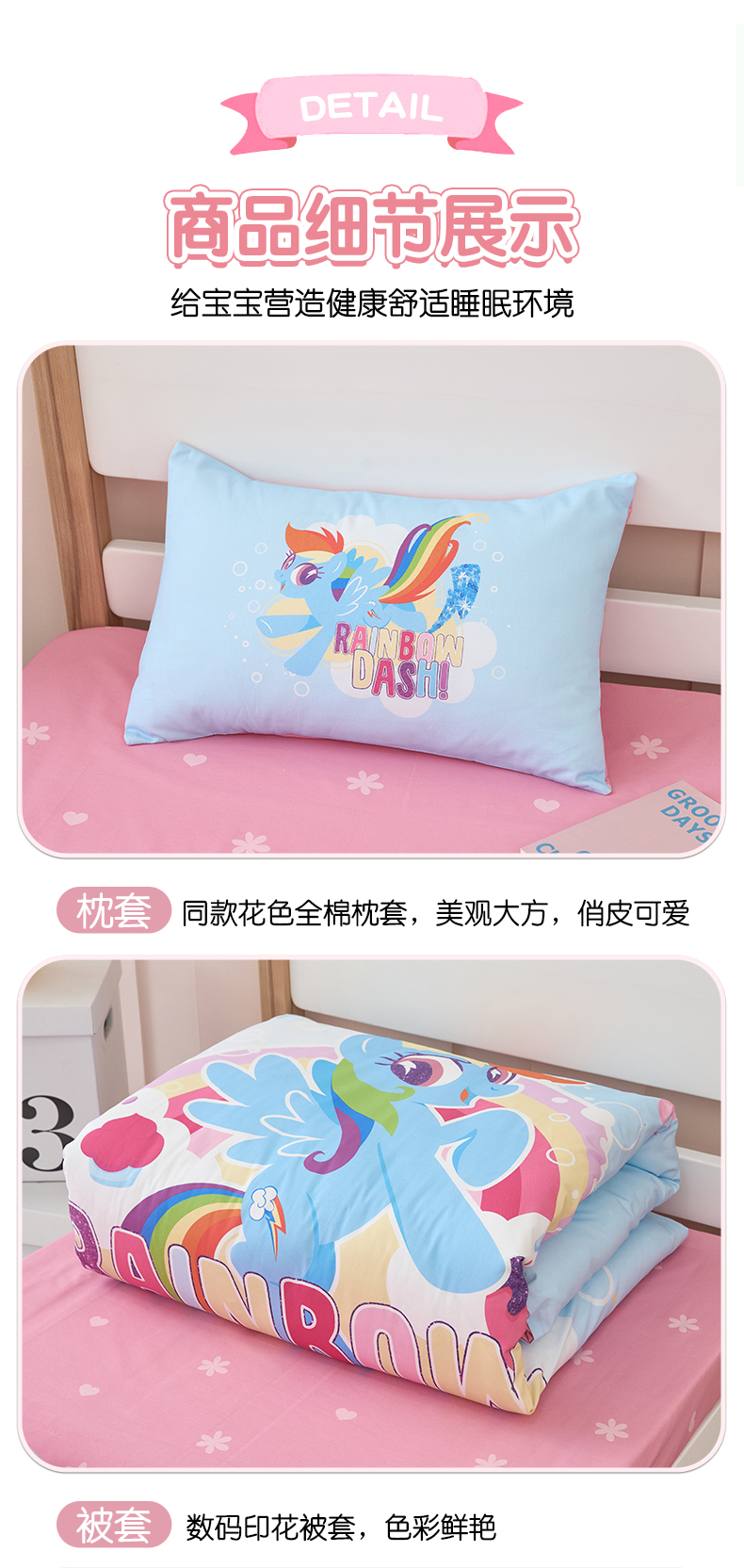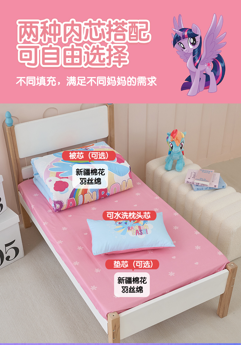 商品名称:百利卡通(原迪士尼家纺) 2025新款正版授权小马宝莉全棉数码印花幼儿园童被套装 蓝色云宝T