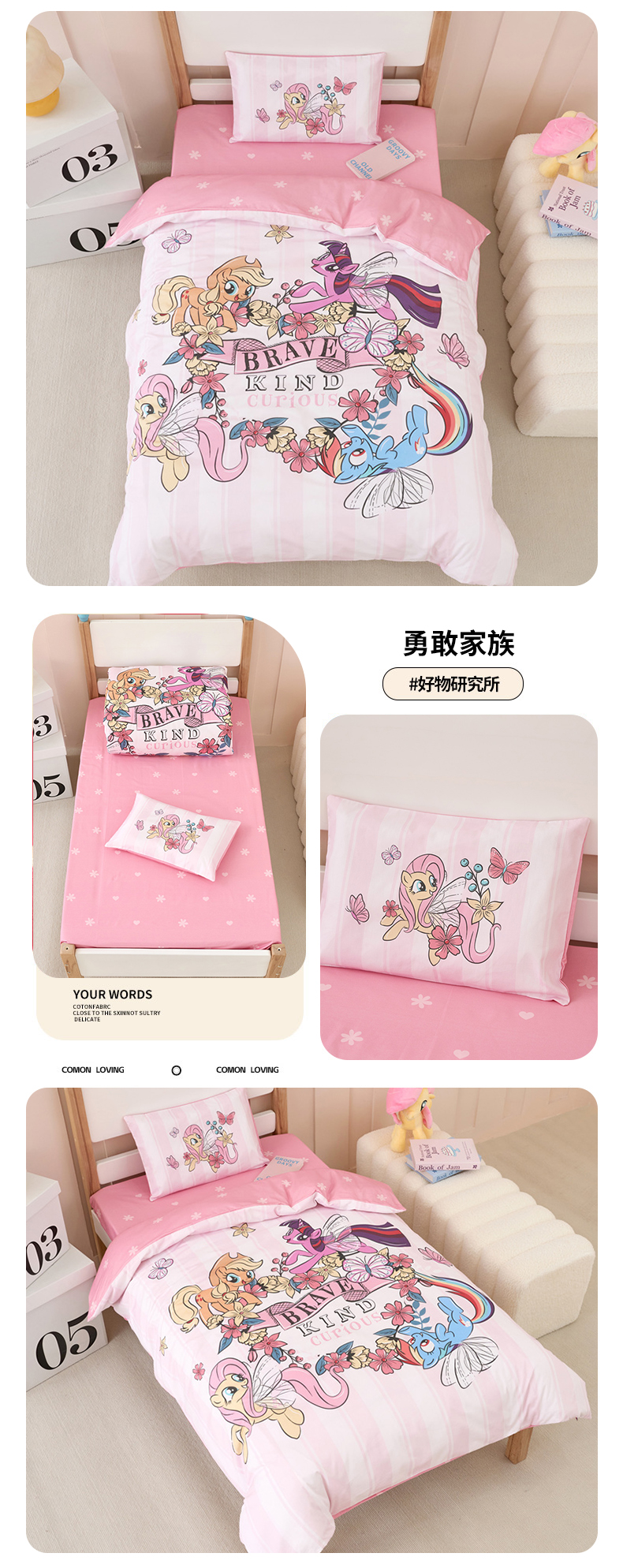 (总)百利卡通(原迪士尼家纺) 2025新款全棉双层纱小马宝莉系列三四件套,花中碧琪,花中柔柔,花中珍奇,云和紫悦