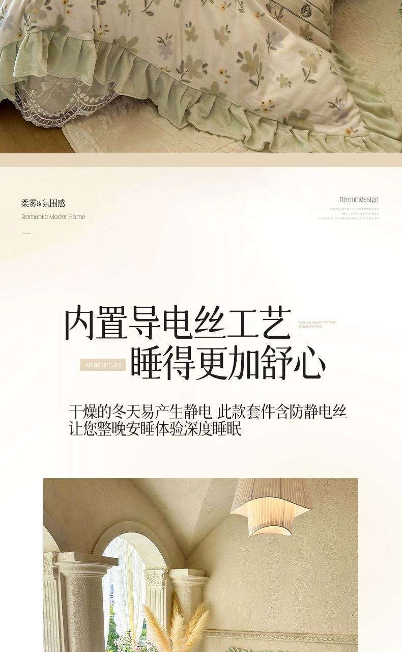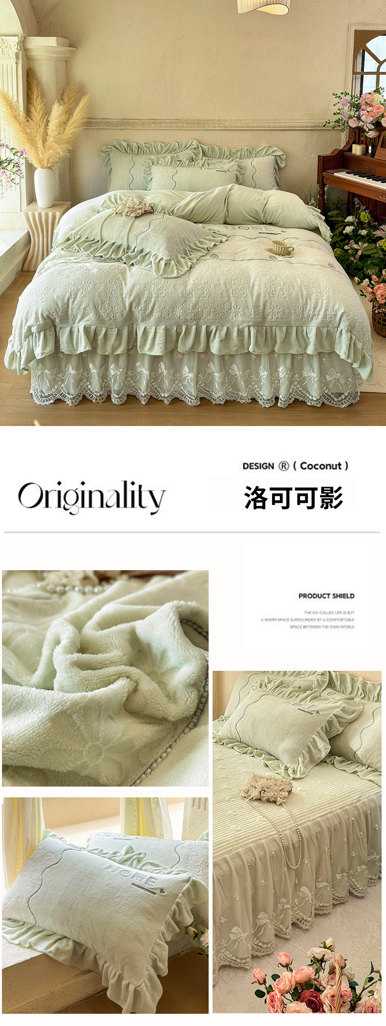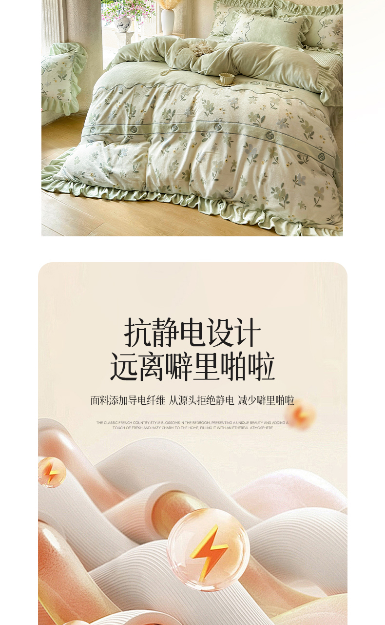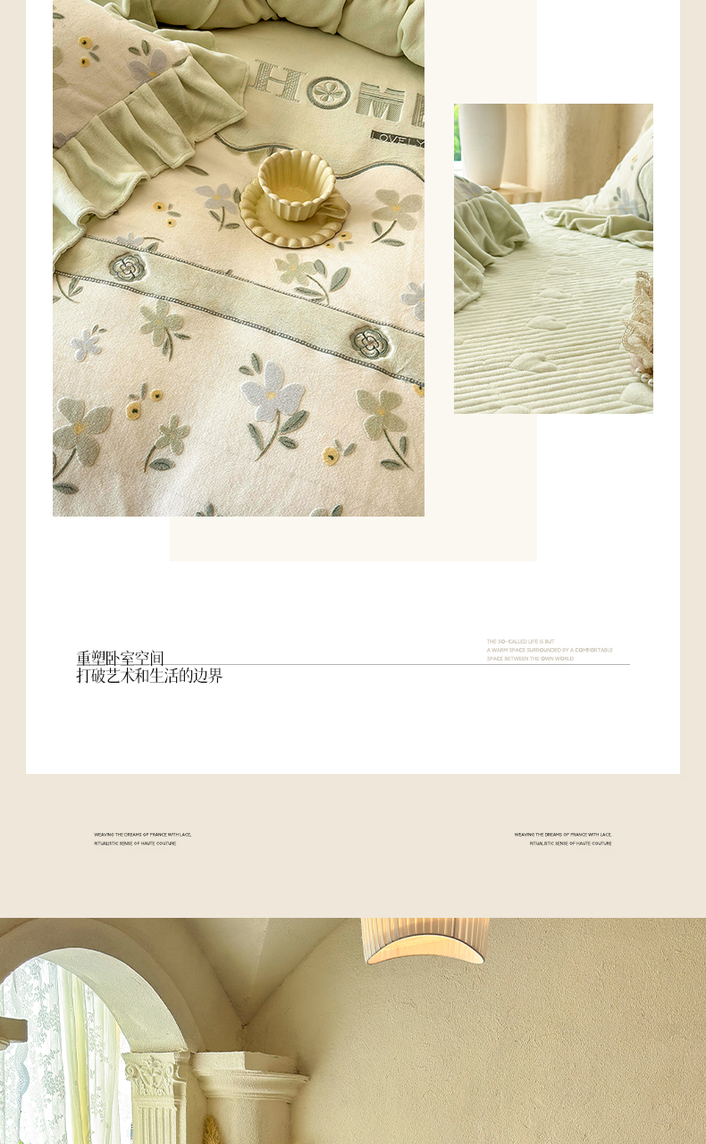 商品名称:宜凡家纺 2025新款牛奶绒雕花拼接刺绣床裙四件套 香槟漫月