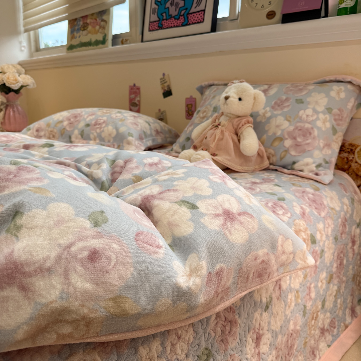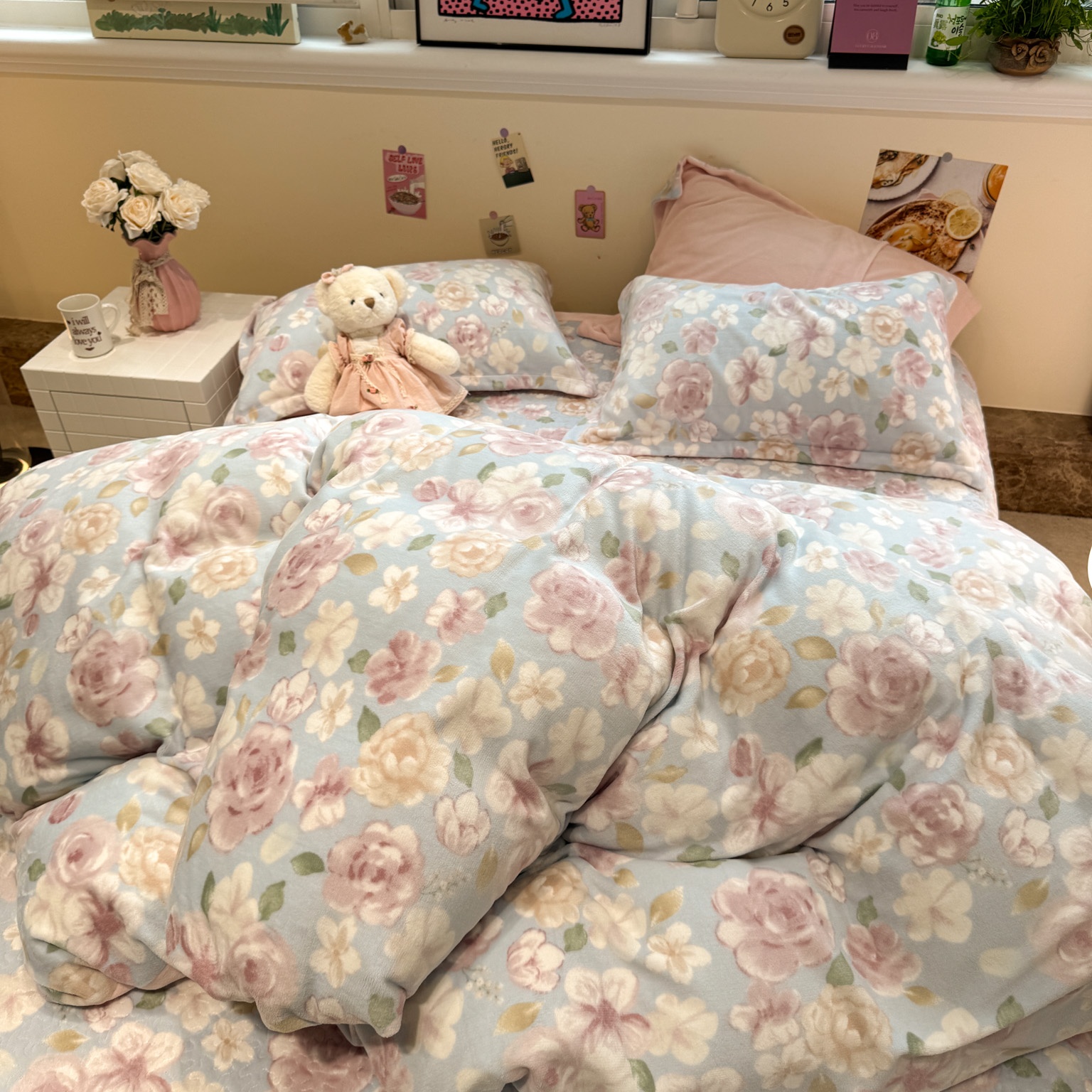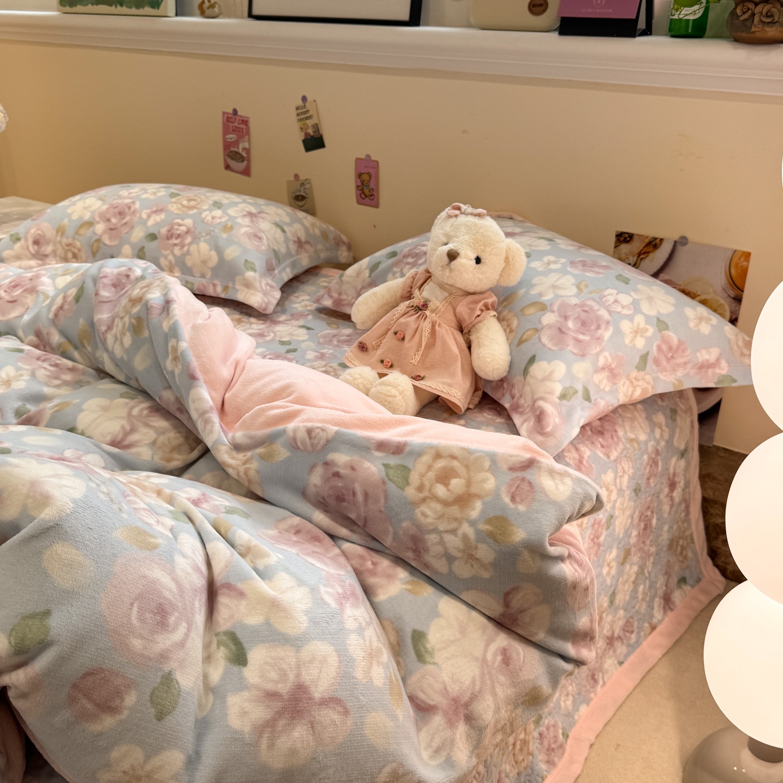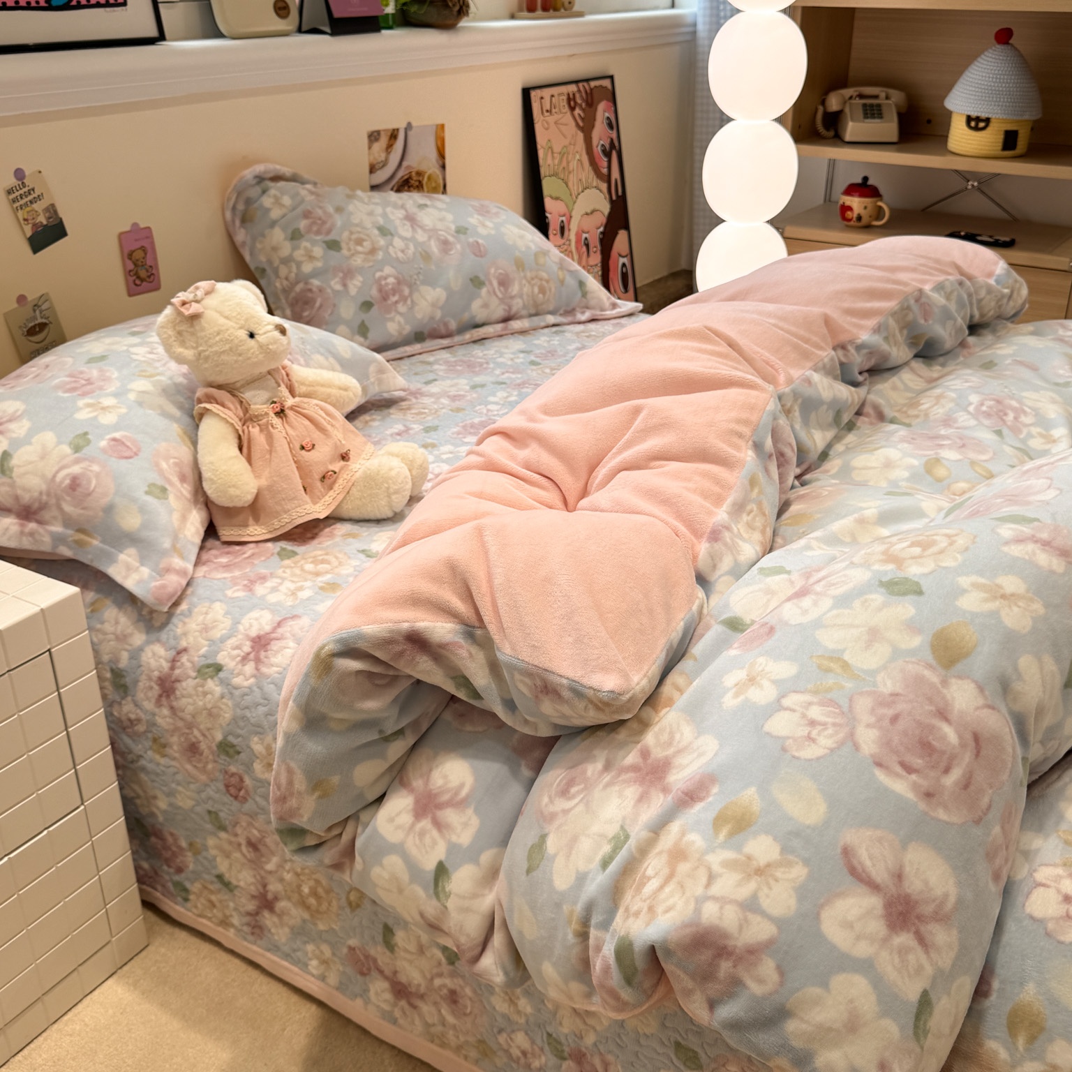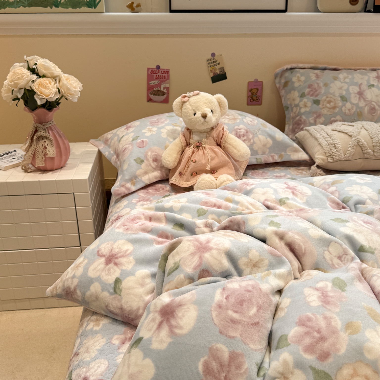 潘朵拉 2025新款ins风牛奶绒床盖四件套 花漾