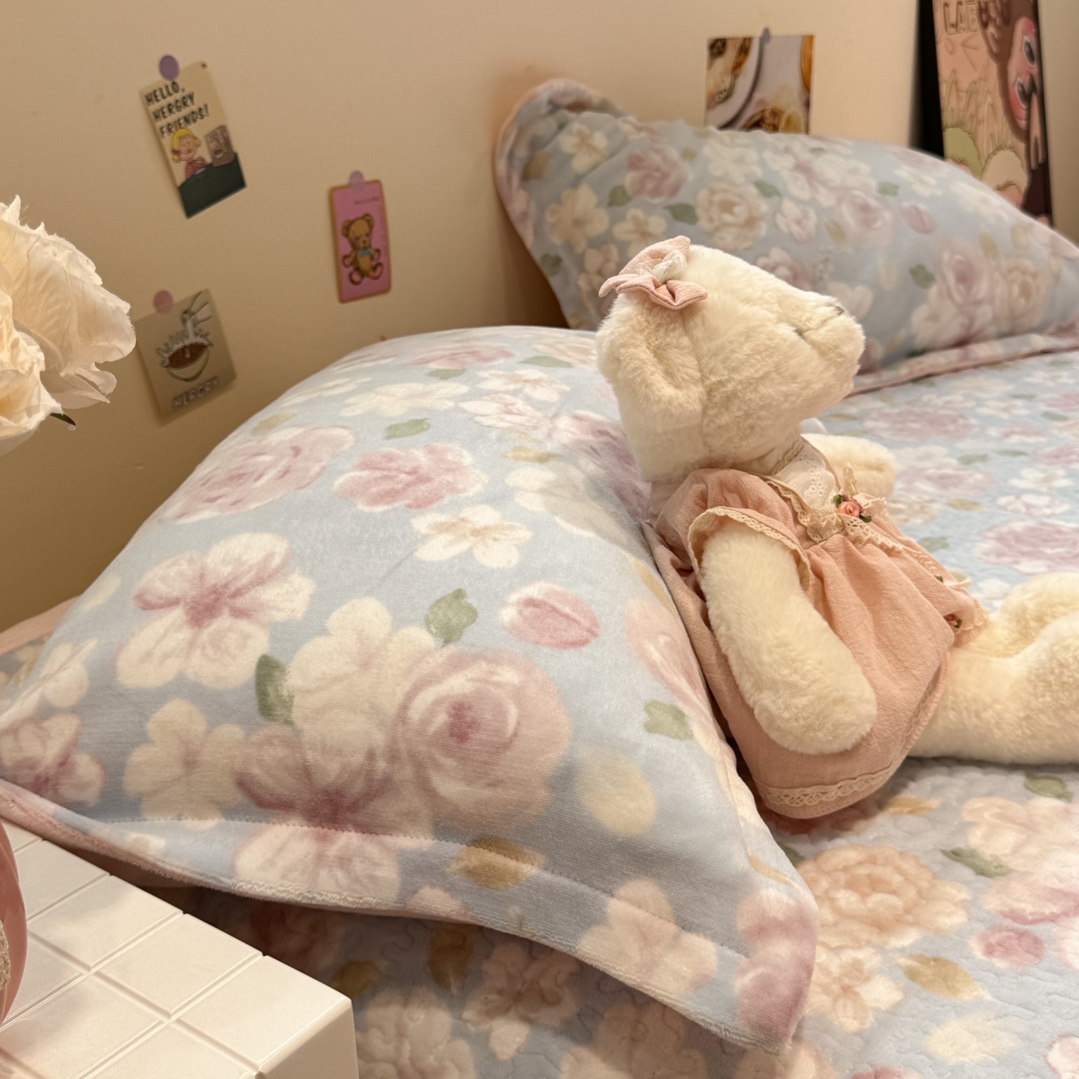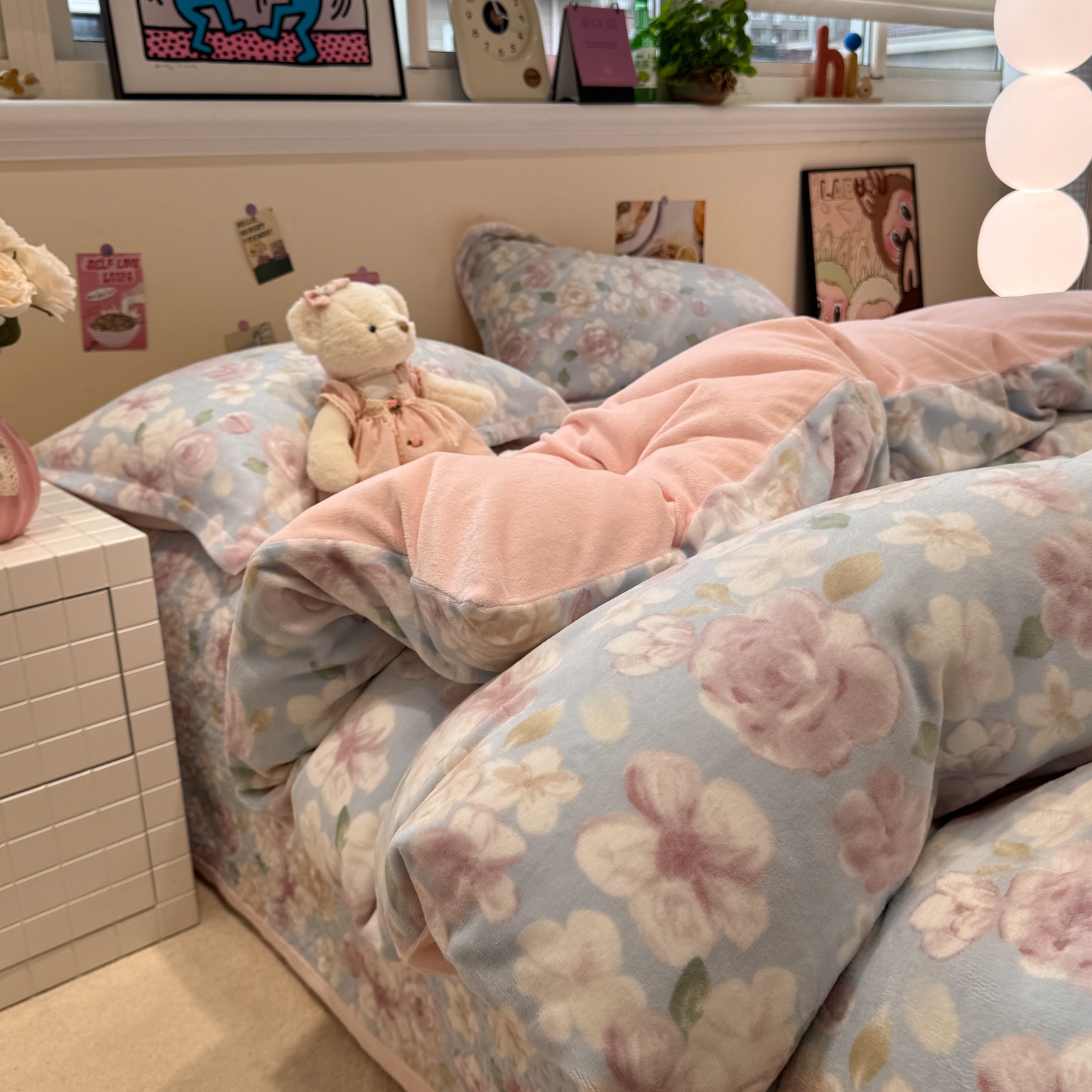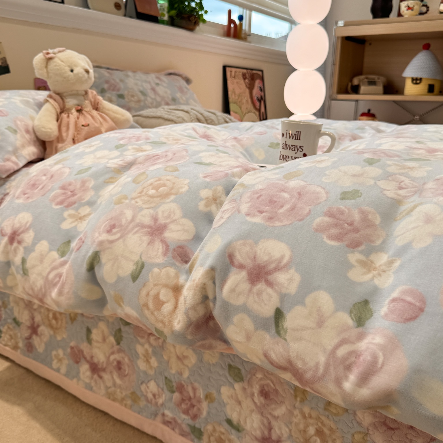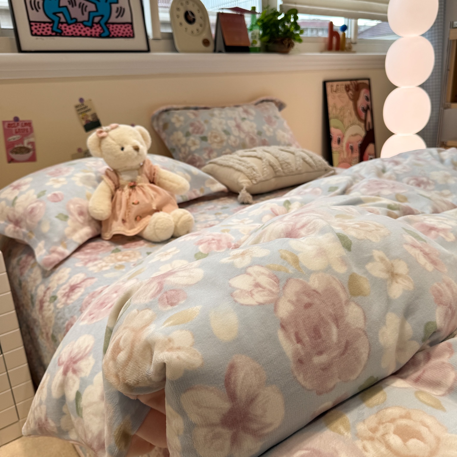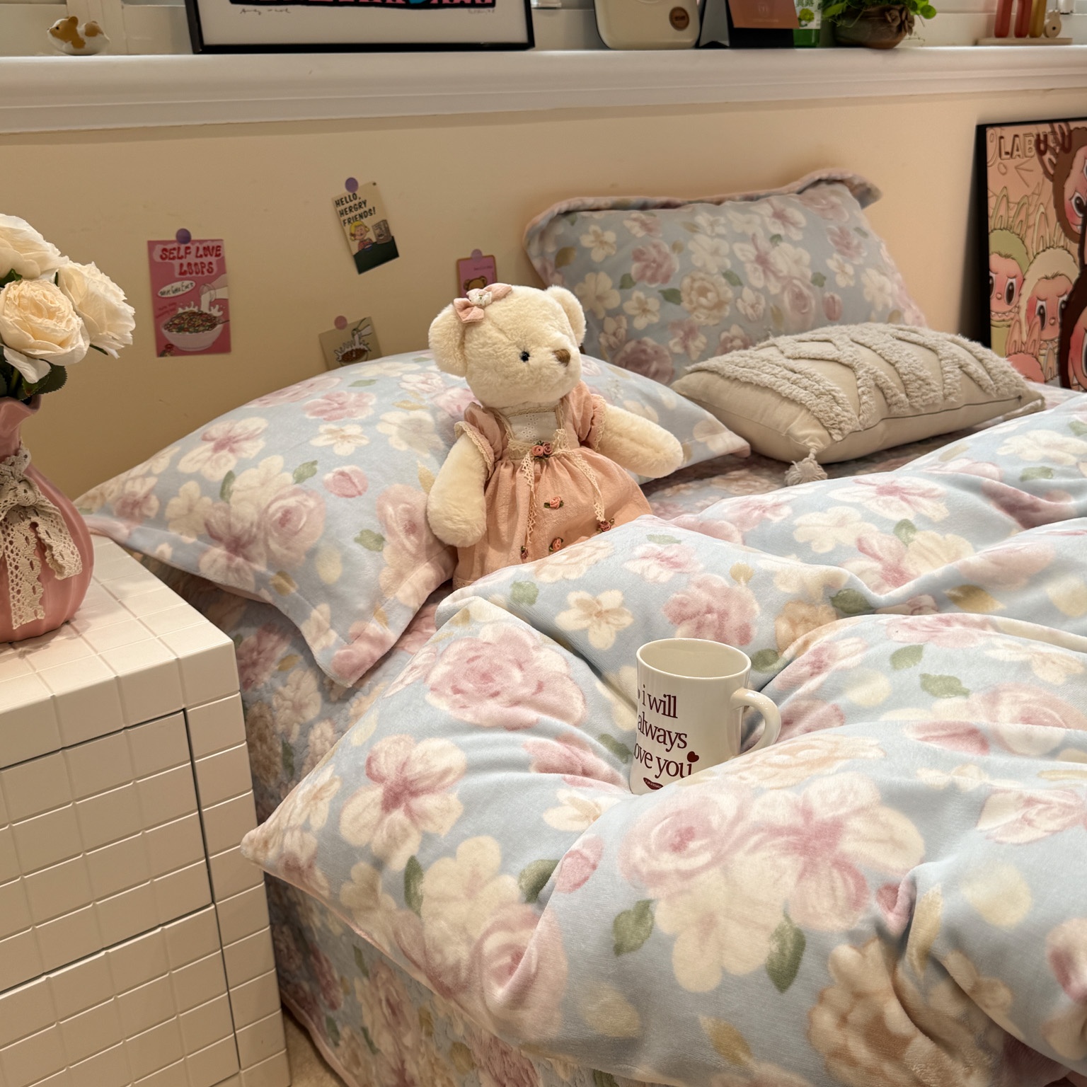 潘朵拉 2025新款ins风牛奶绒床盖四件套 花漾