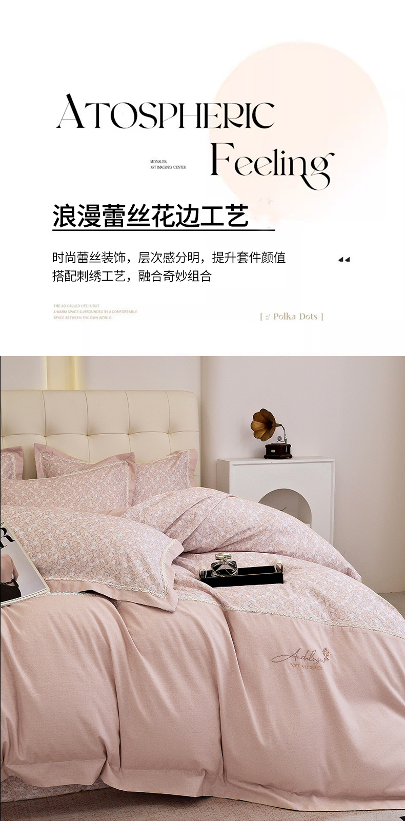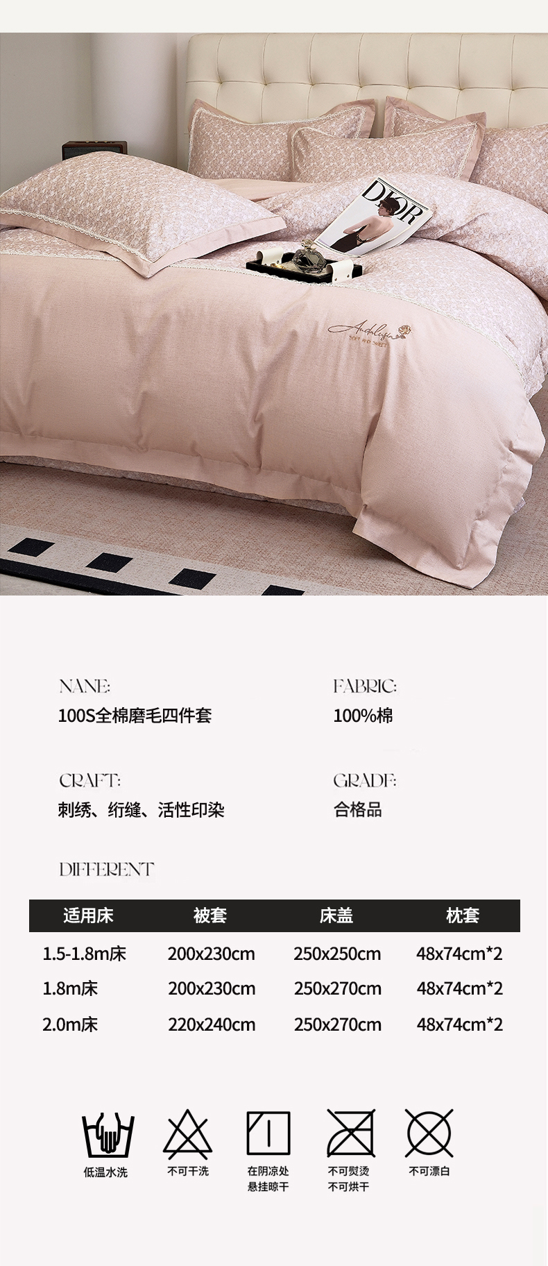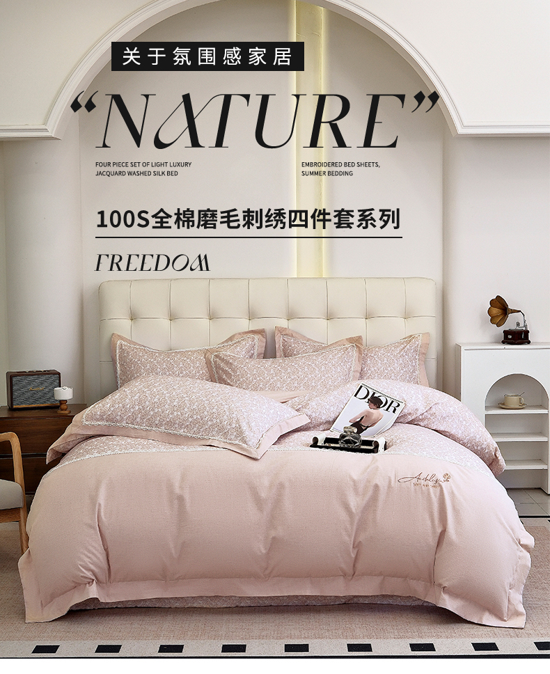 商品名称:OL家纺 2025新款100s全棉磨毛印染加刺绣四件套(控价1.5/1.8标准被套折券后368元!!!) 樱桃粉
