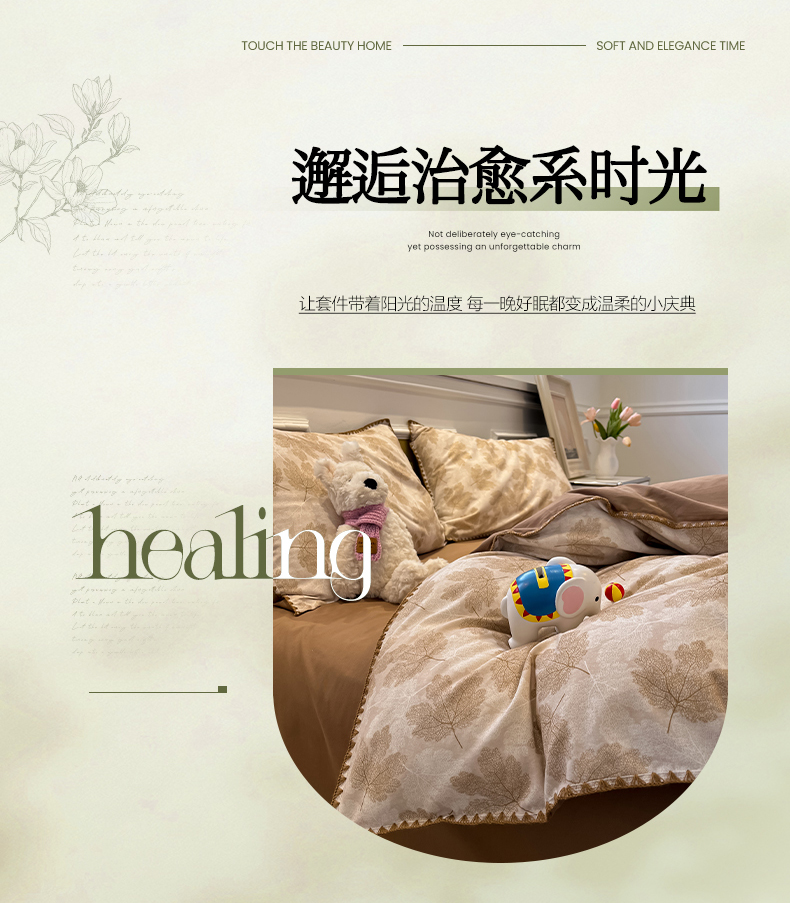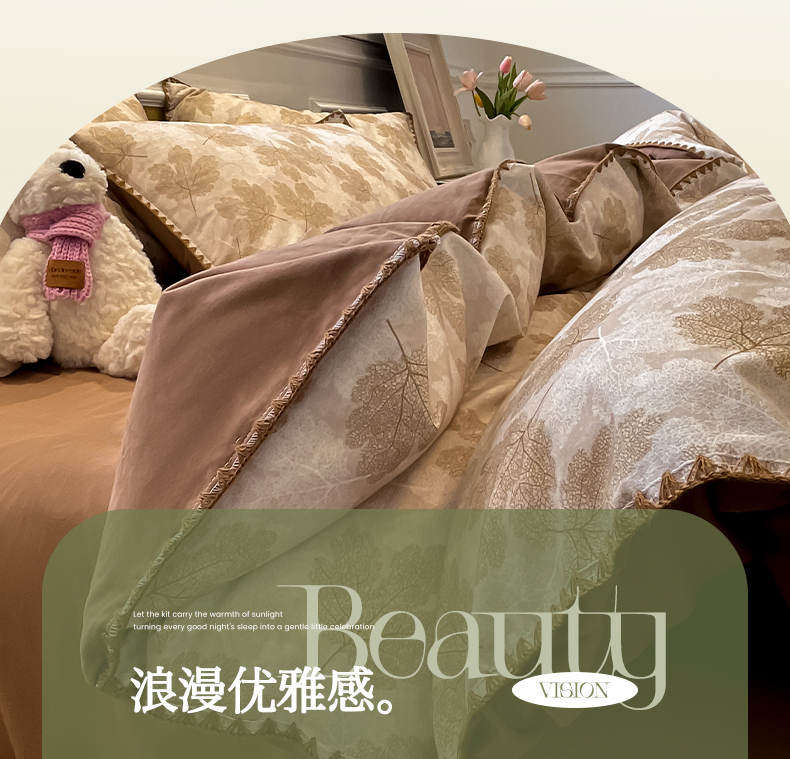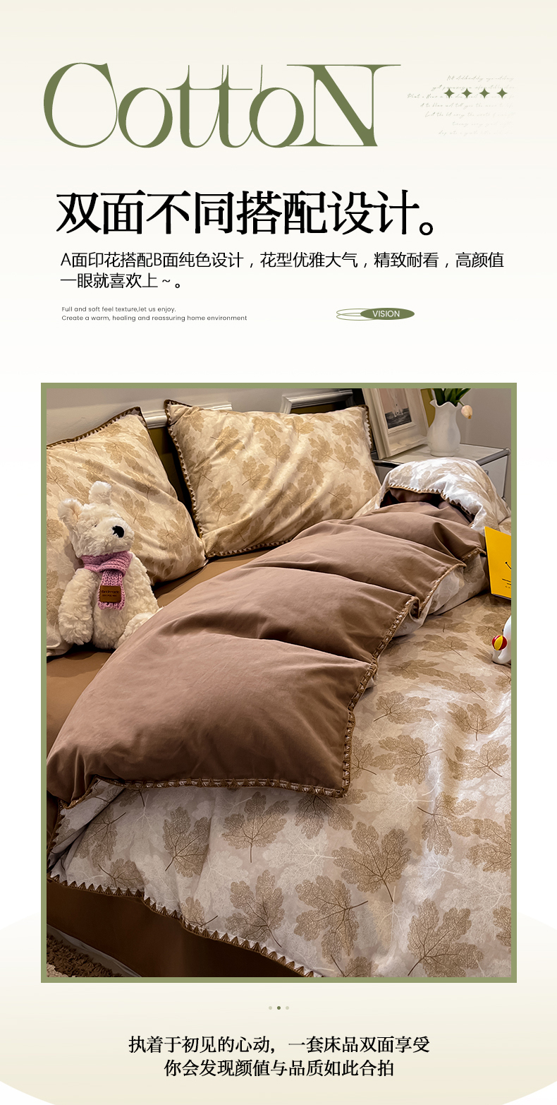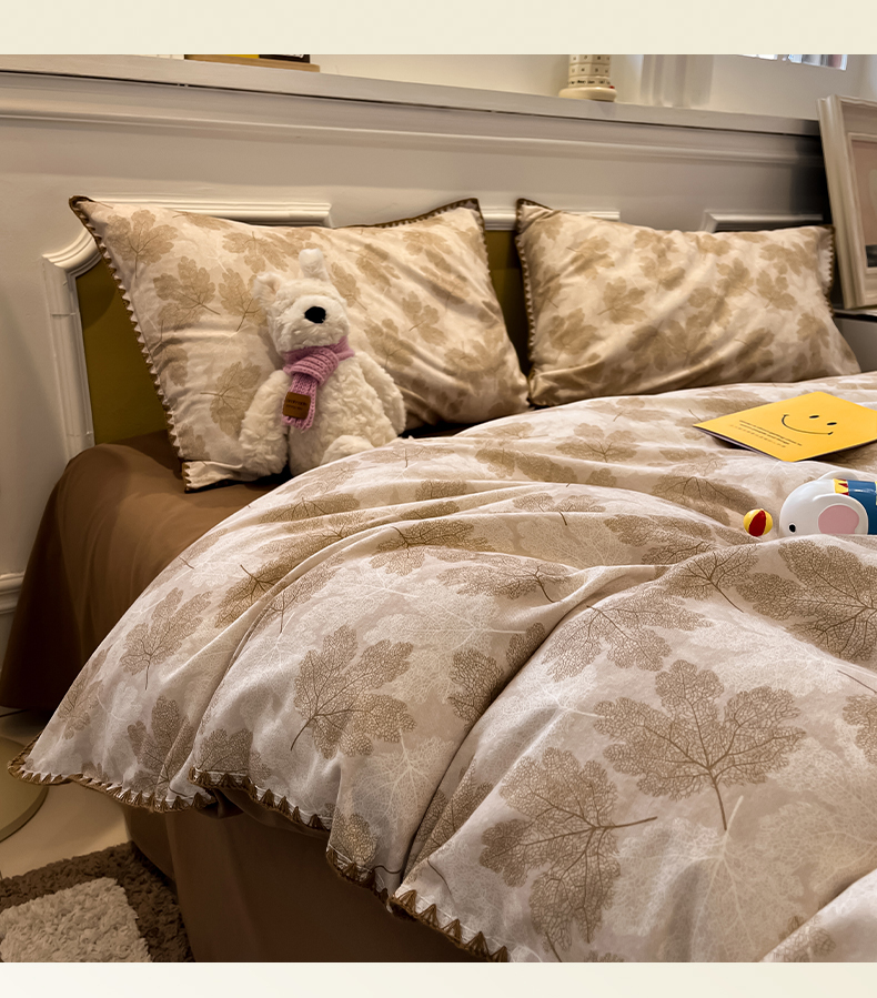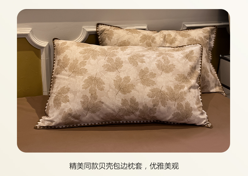 吉象家纺 2025新款全棉磨毛三角针贝壳边印花四件套 枫叶