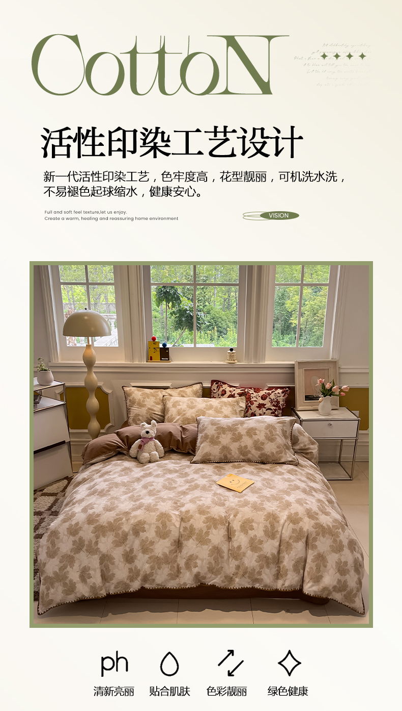 商品名称:吉象家纺 2025新款全棉磨毛三角针贝壳边印花四件套 枫叶