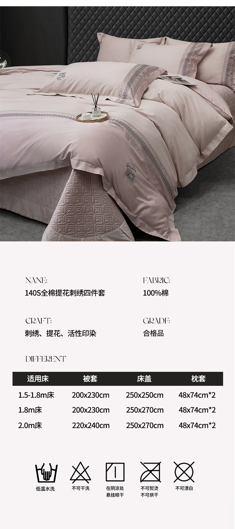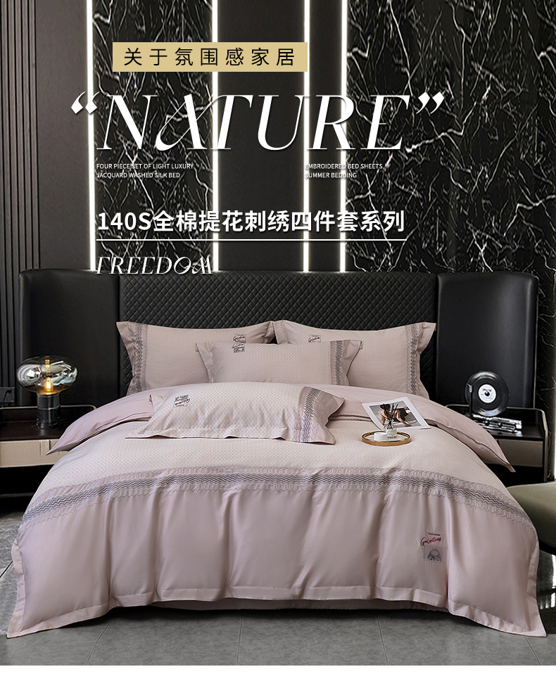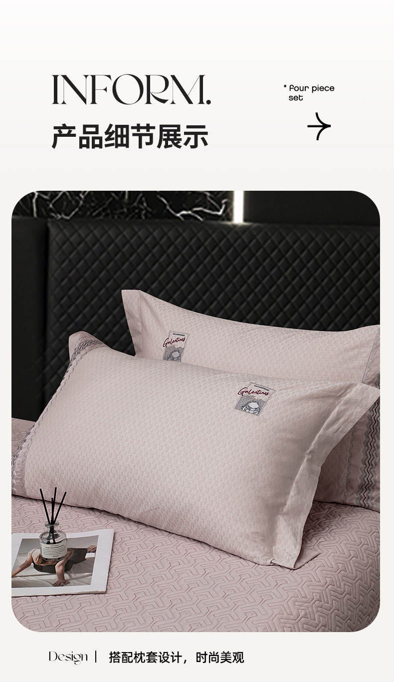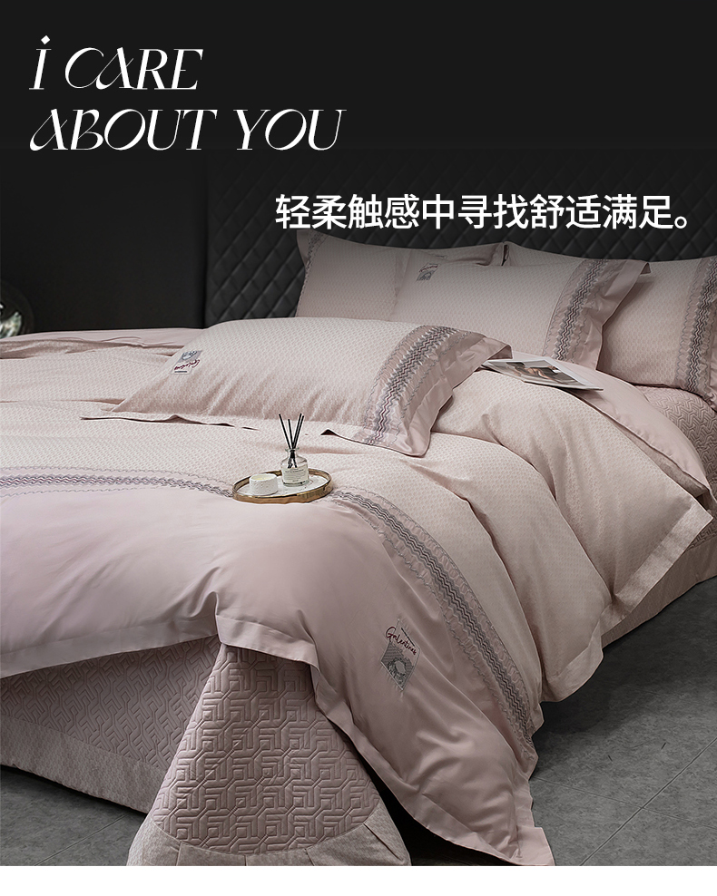 商品名称:OL家纺 2025新款140全棉提花刺绣四件套-亚尔夫(控价1.5/1.8标准被套折券后438元!!!) 亚尔夫-樱桃粉