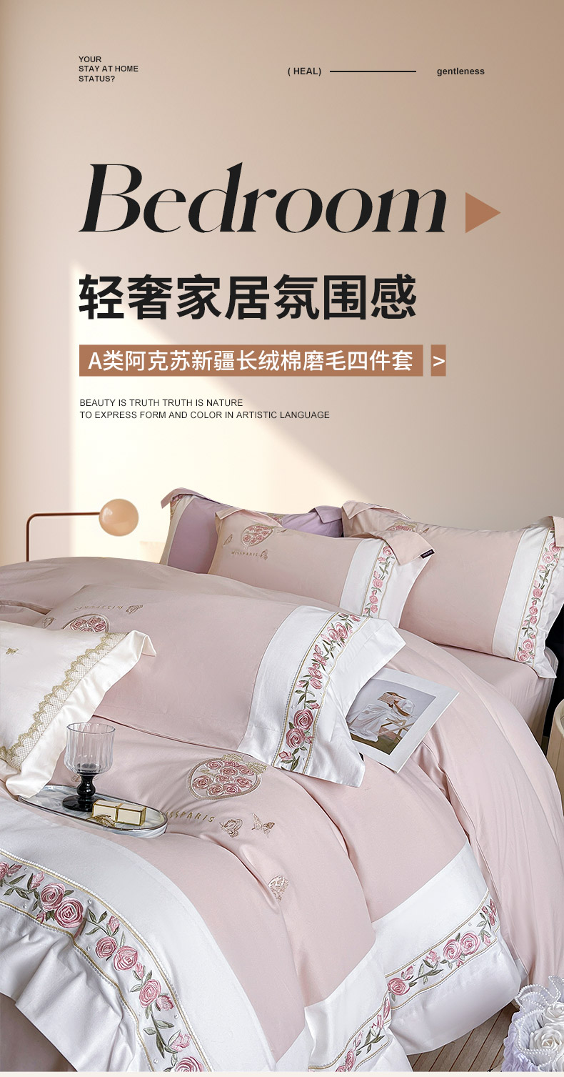 当前位置: 91家纺网 > 商品网购 > 床品套件 > 四件套 > 长绒棉四件套 > 冬季爆款A类长绒棉加厚磨毛全棉纯棉保暖高端重工刺绣全工艺被套床单轻奢床上用品 花巷-颜粉