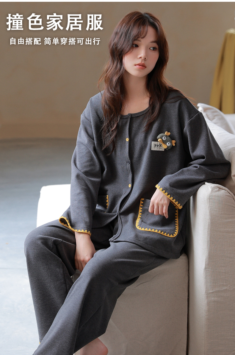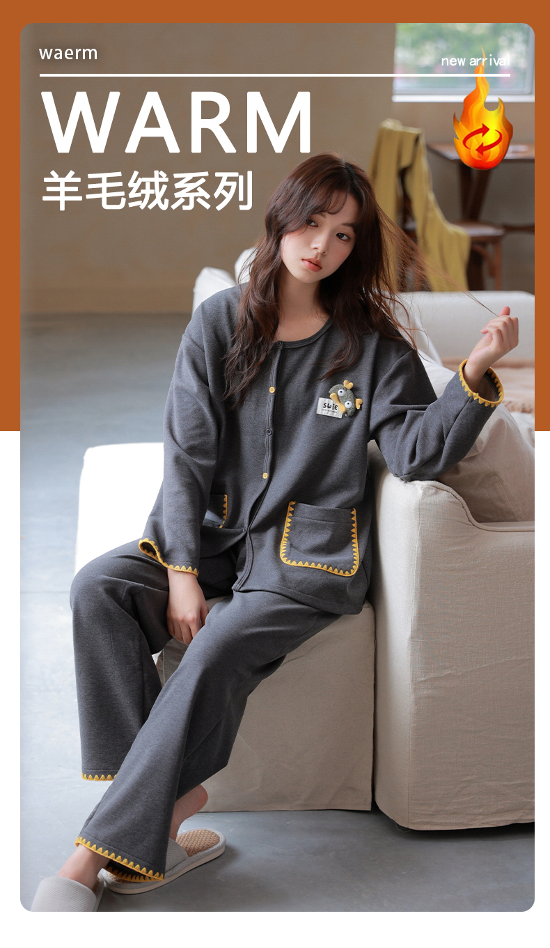 商品名称:洛兰沙家居馆 2025新款睡衣女长袖新款春秋双层羊绒德绒可外穿卡通开衫家居服套装韩版秋冬 42314
