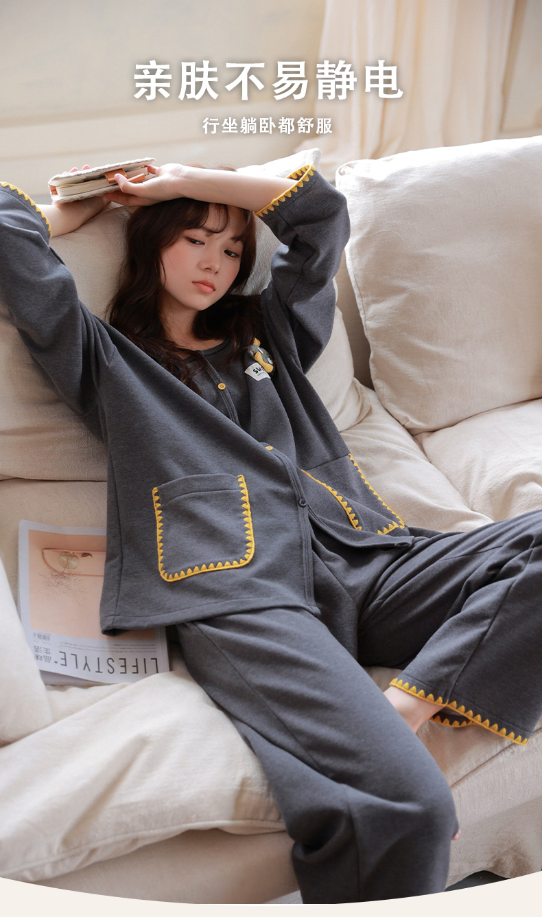 (总)洛兰沙家居馆 日系无印风品质睡衣女纯棉长袖春秋薄长袖男情侣格子可外穿家居服,女款粉白,女款黑白,女款灰白,男款黑白,男款灰白