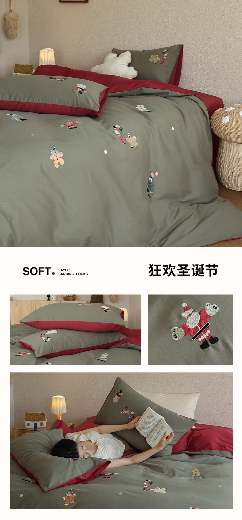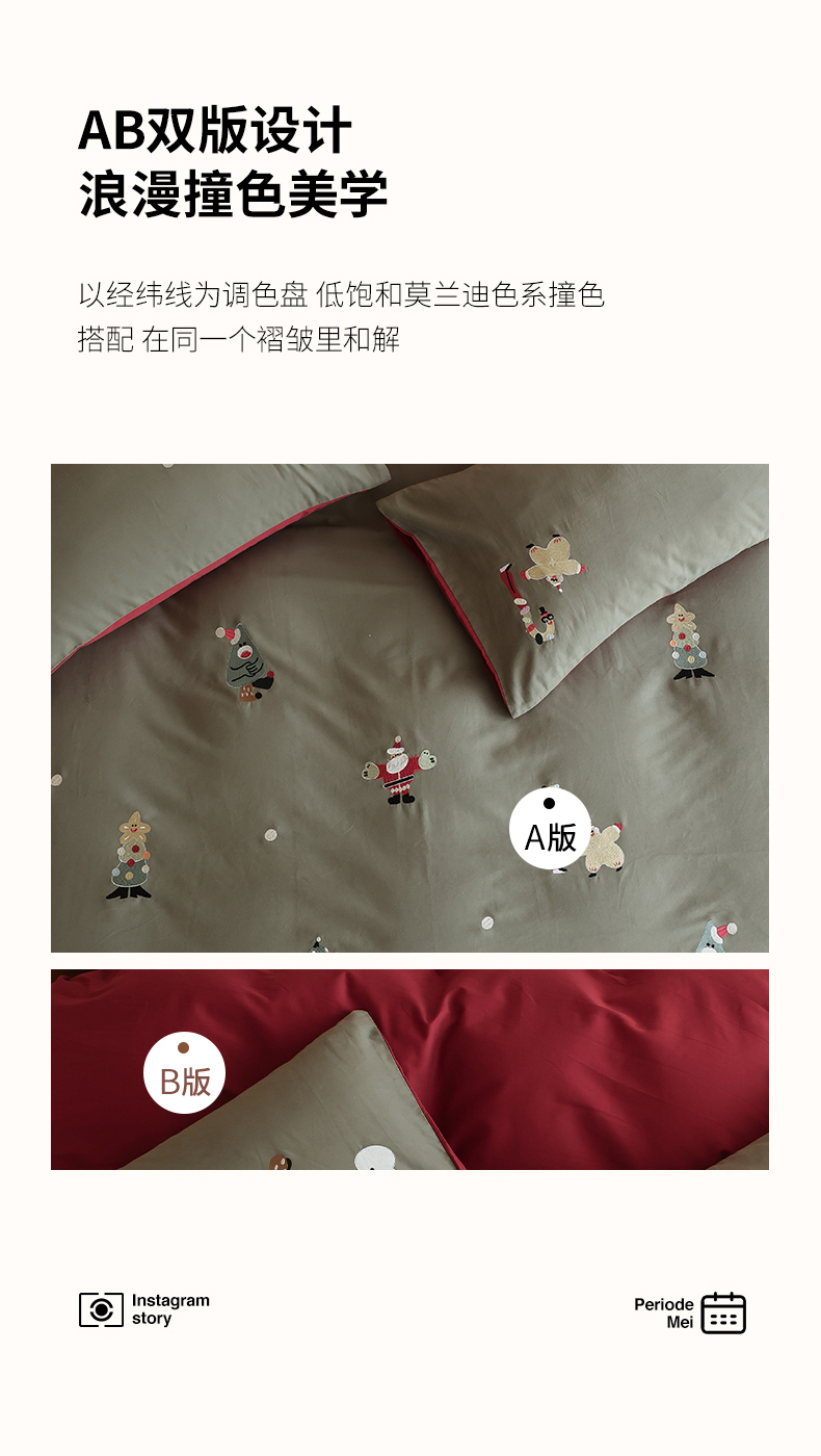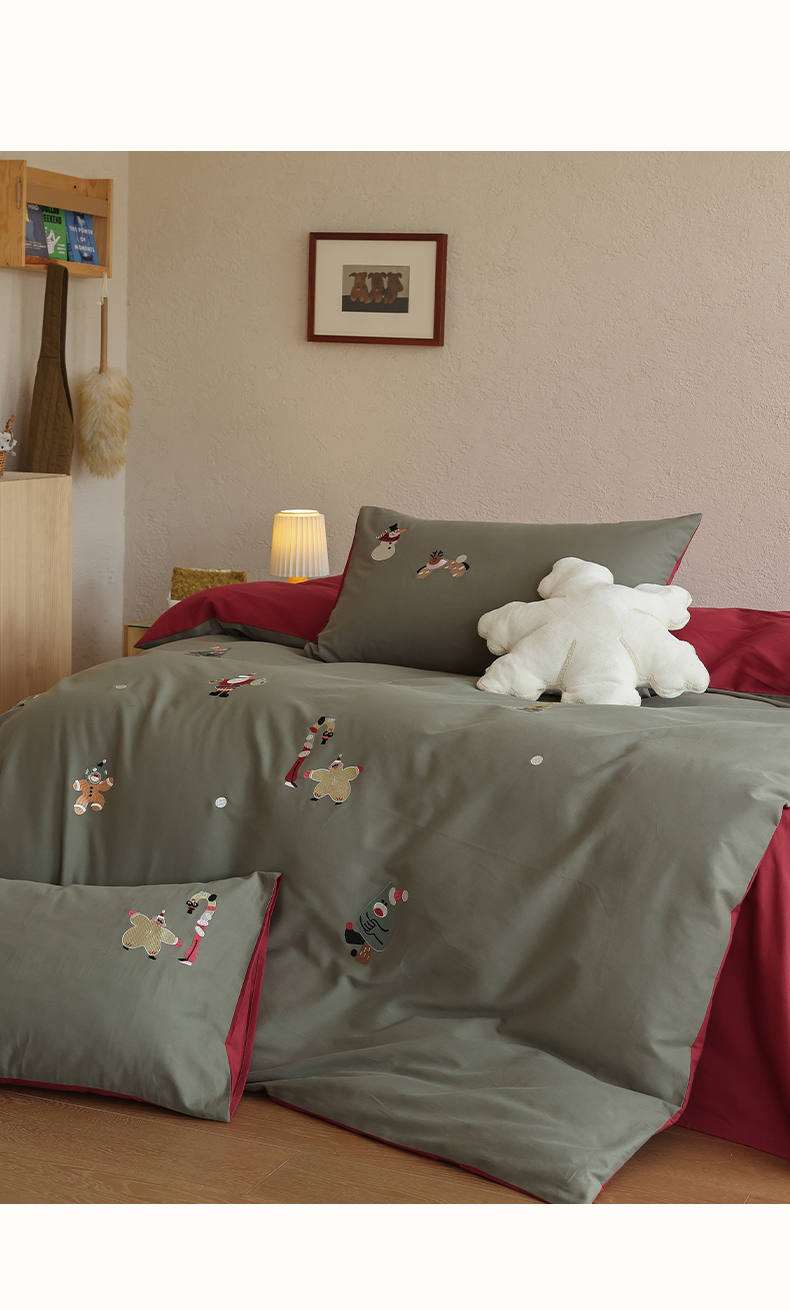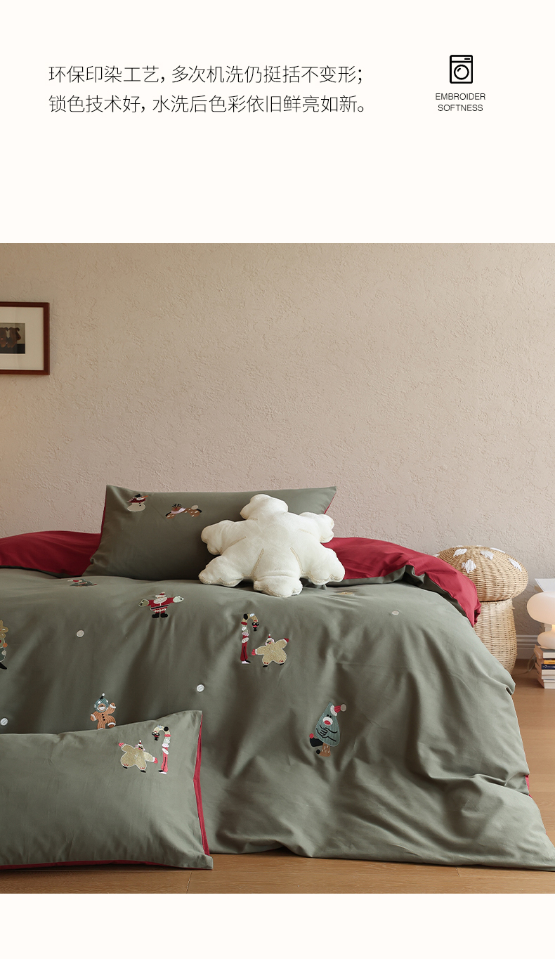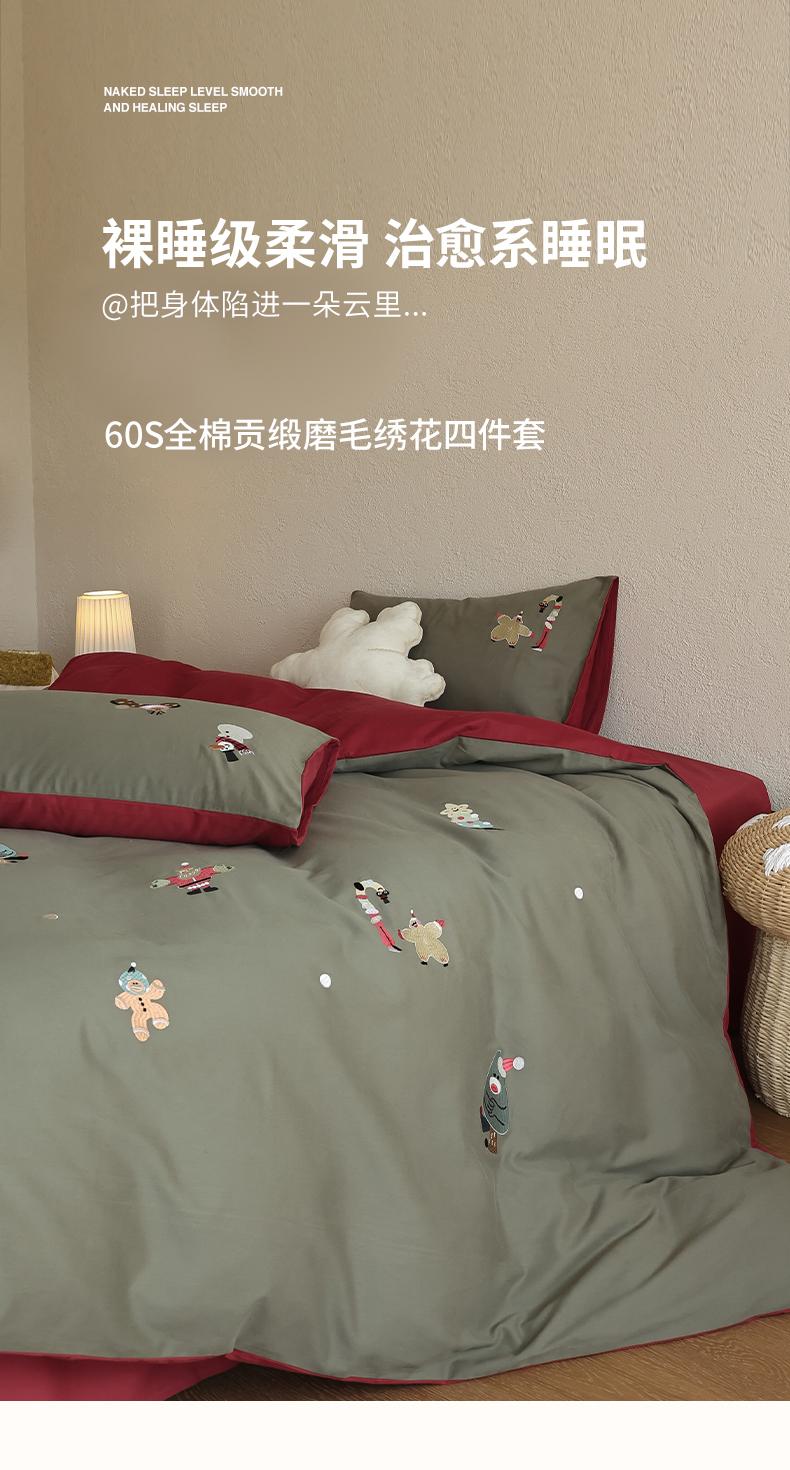 (总)安莱生活 2025新款贡缎磨毛60s绣花四件套-风格一,狂欢圣诞节,蓝粉小象,梦境摩天轮,巧克力瑞士卷,童心小木马,樱桃小金链