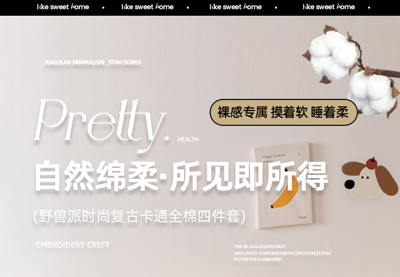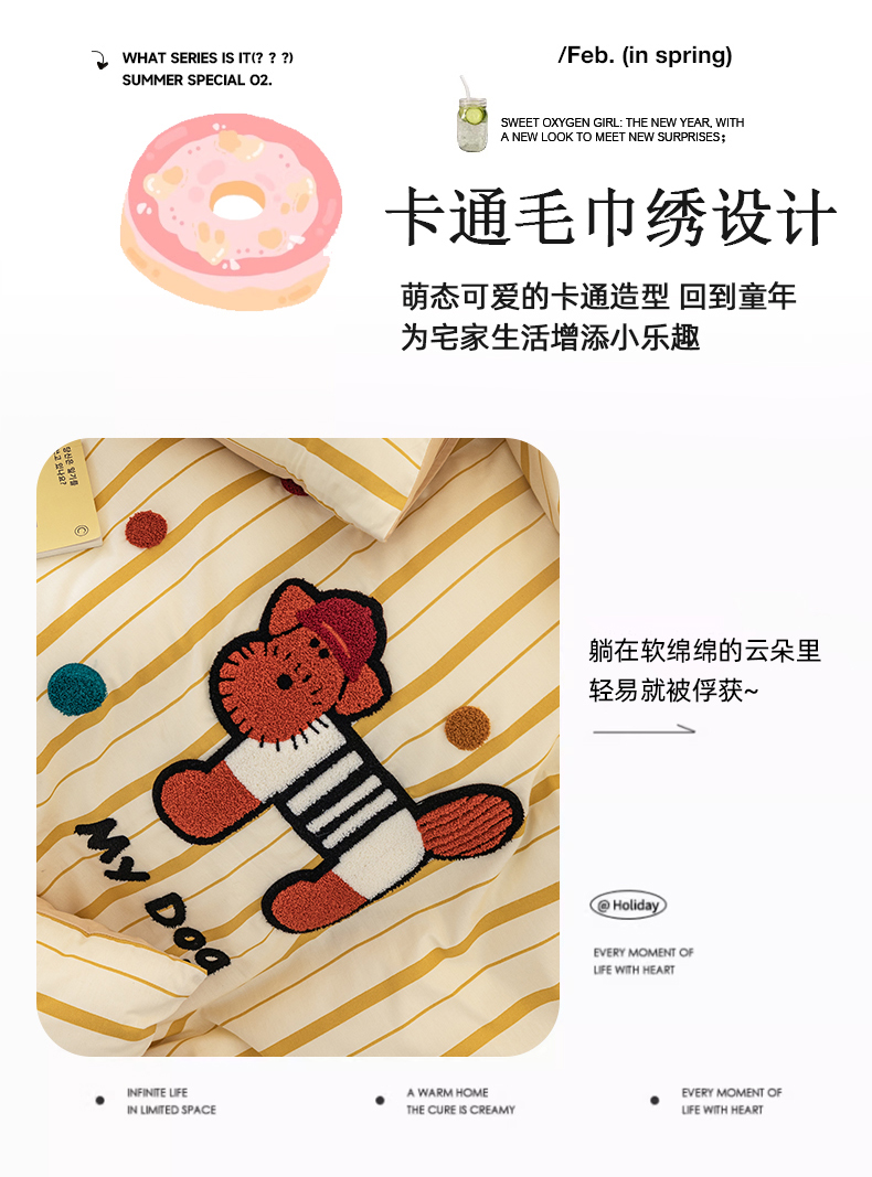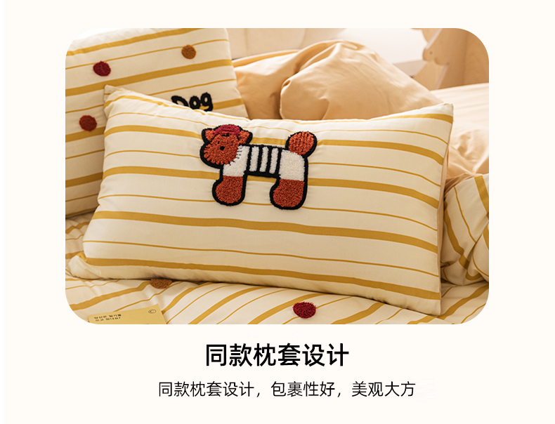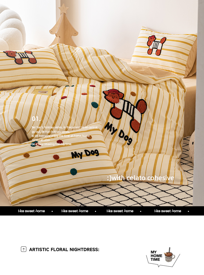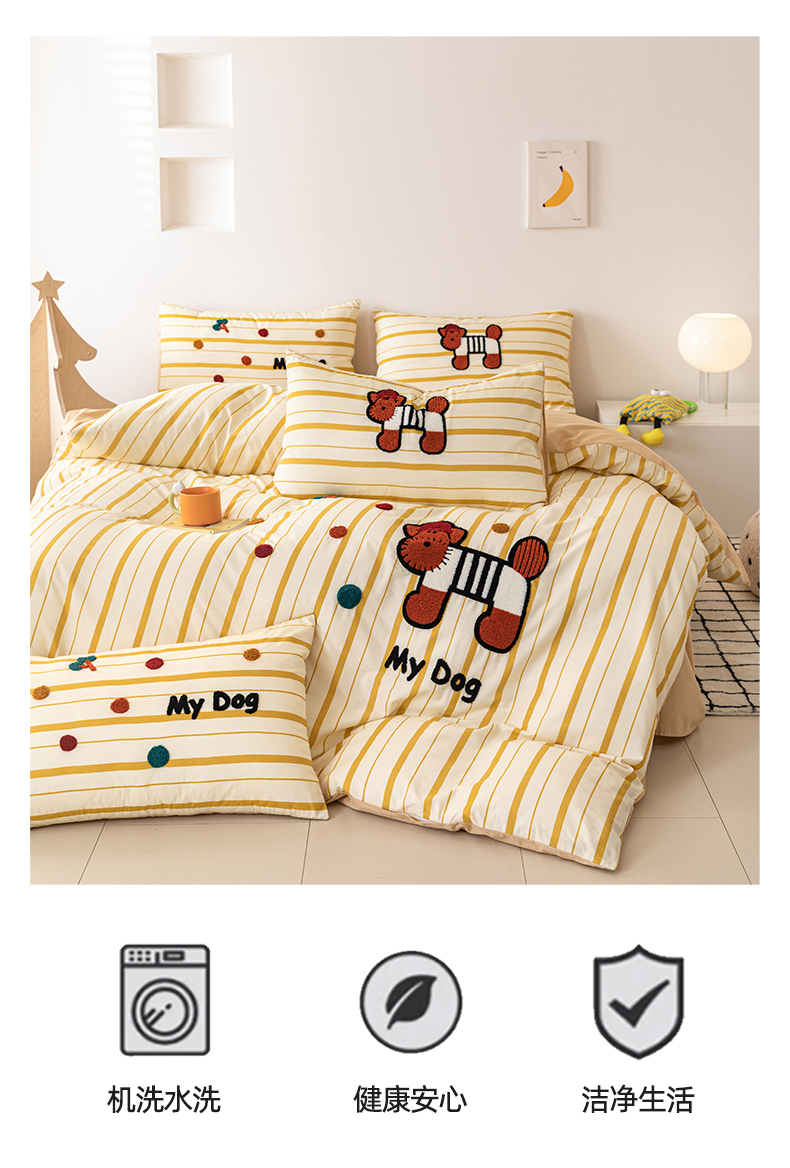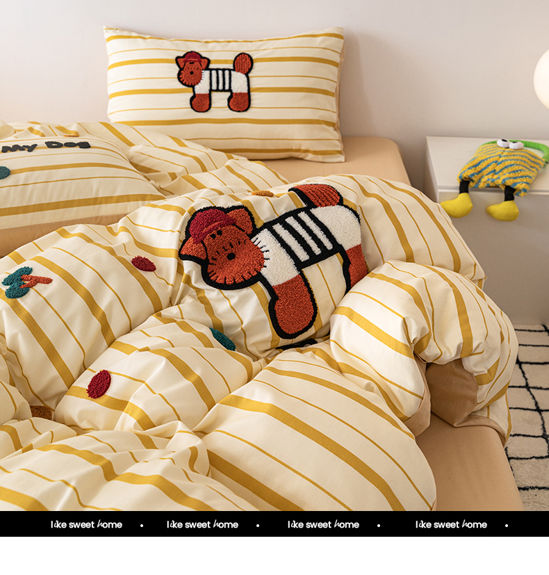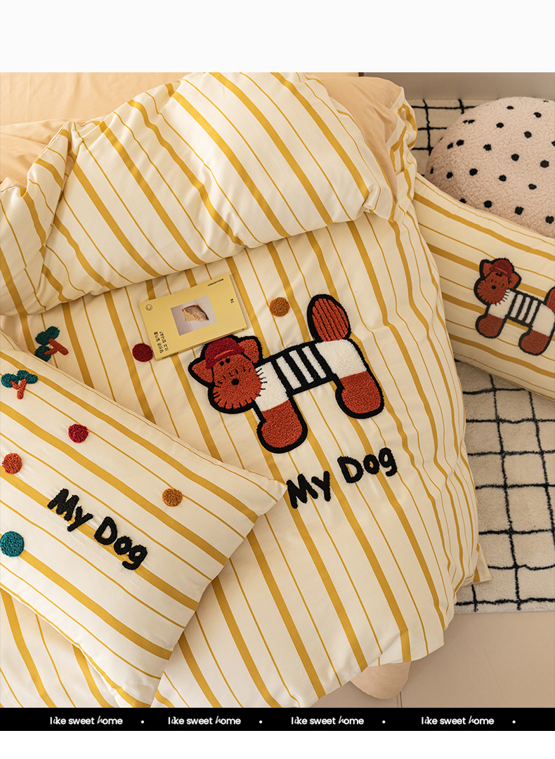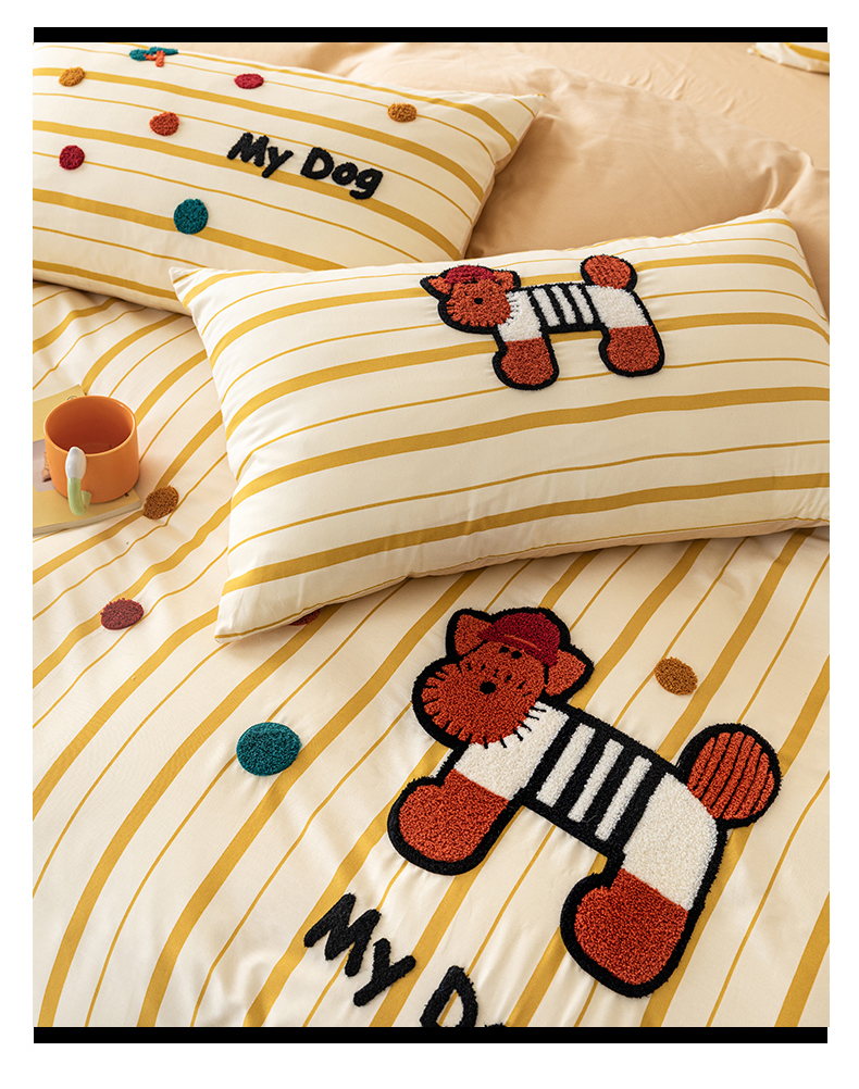 商品名称:锦觅 2025新款时尚条纹小清新卡通学生季系列印花绣花全棉纯棉四件套 puppy艺术家