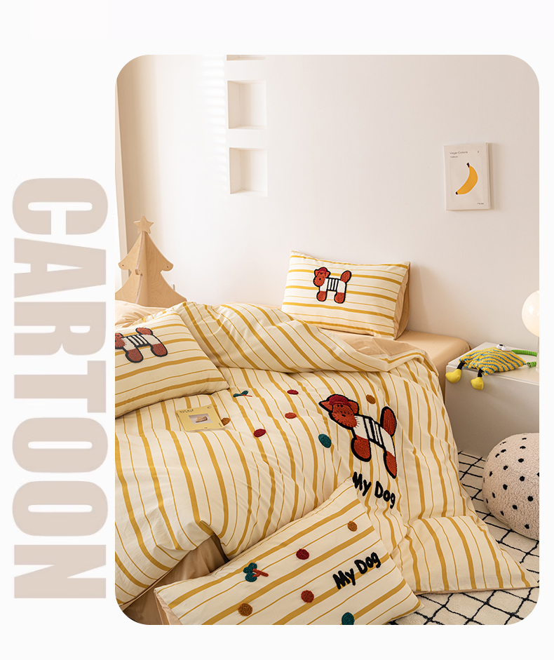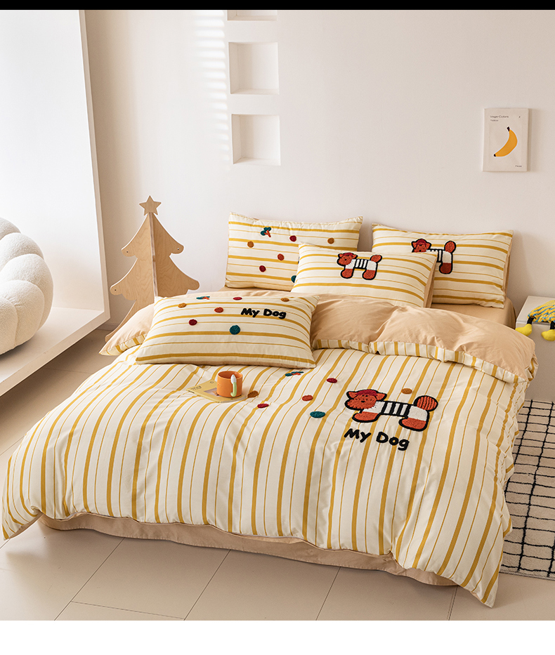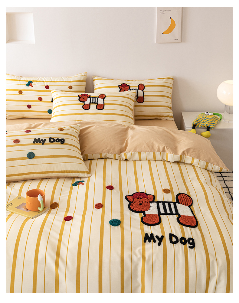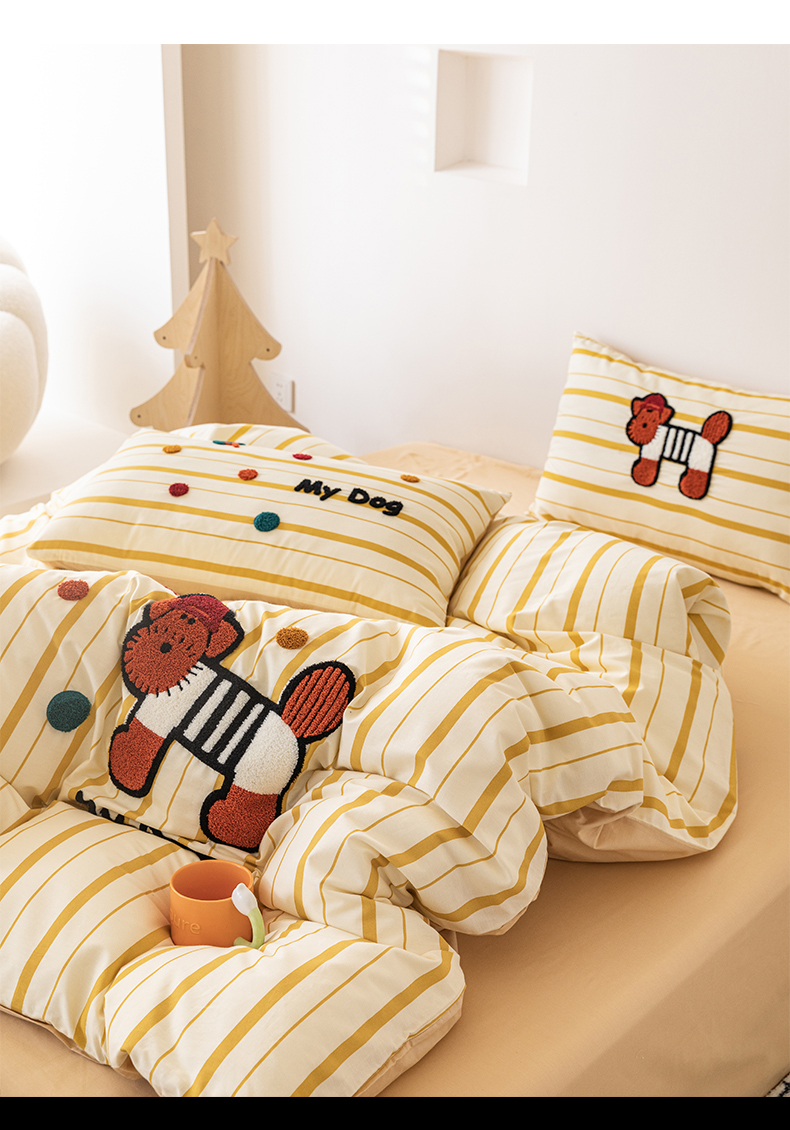 锦觅 2025新款时尚条纹小清新卡通学生季系列印花绣花全棉纯棉四件套 puppy艺术家