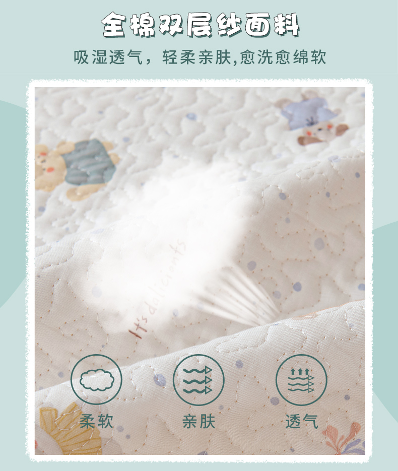 (总)拾小柒 2025年新款全棉双层纱隔脏姨妈垫护理垫床护垫,豆豆好朋友-不防水款,鲤安-不防水款,萌趣森林粉-不防水款,萌趣森林蓝-不防水款,豆豆好朋友-防水款,鲤安-防水款,萌趣森林粉-防水款,萌趣森林蓝-防水款