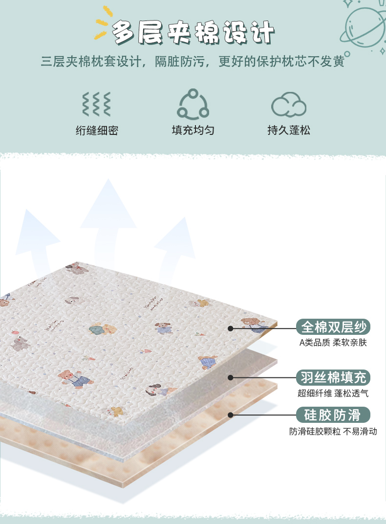 • 91家纺网 家纺一手货源 找家纺 拾小柒 2025年新款全棉双层纱枕套夹棉隔脏污防口水头油枕头套 咕噜派米