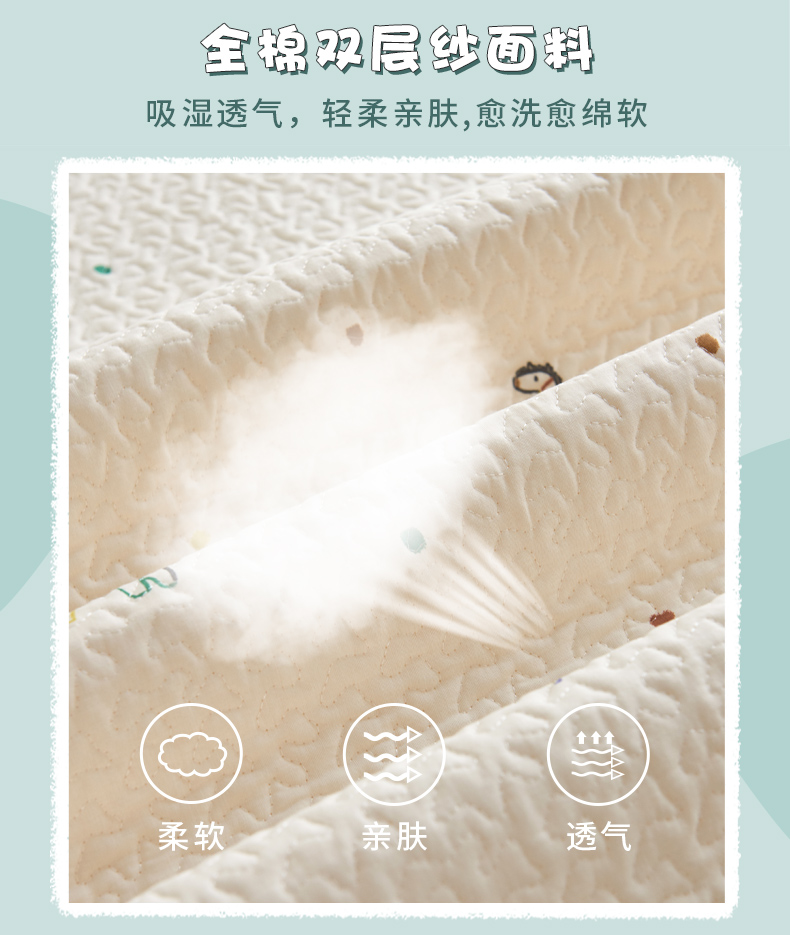 (总)拾小柒 2026年新款全棉双层纱床护垫纯棉防滑床盖床褥子软床垫,豆豆好朋友,咕噜派米,鲤安,萌趣森林粉,萌趣森林蓝
