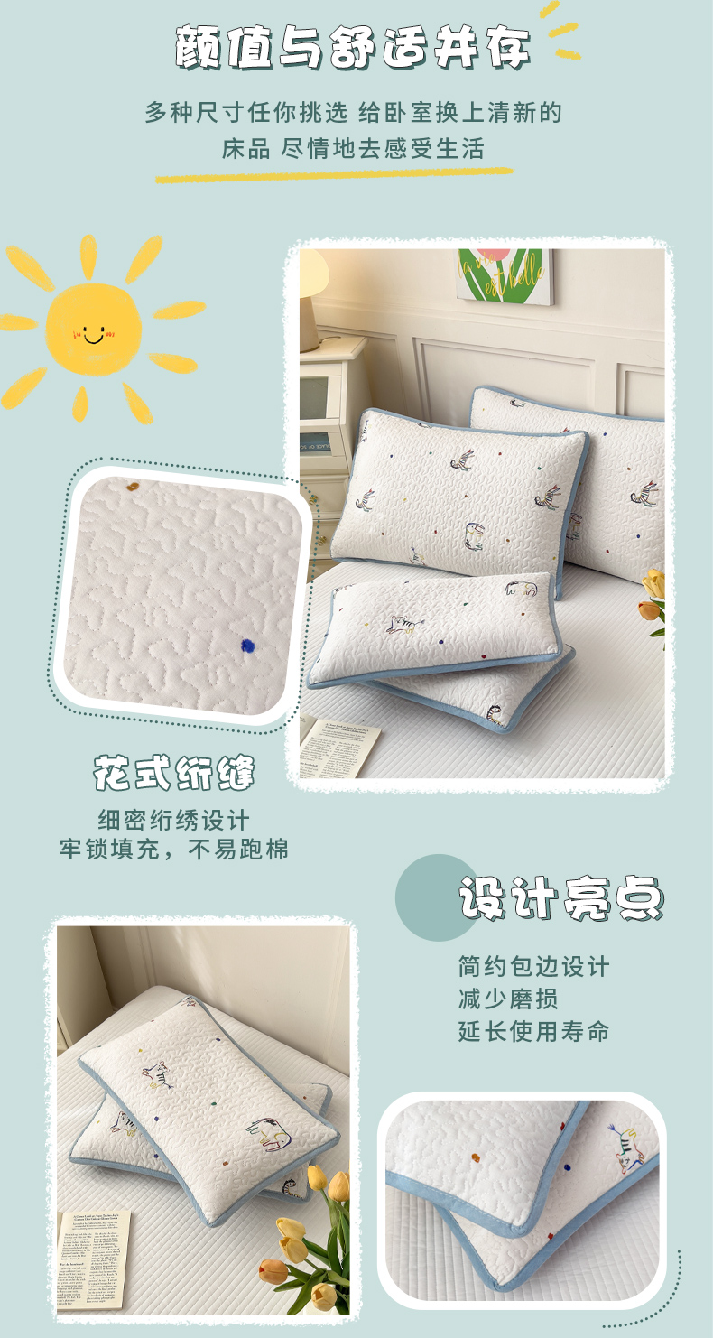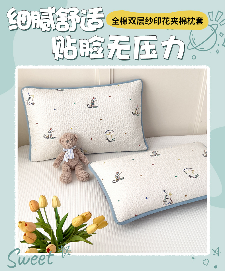 • 91家纺网 家纺一手货源 找家纺 拾小柒 2025年新款全棉双层纱枕套夹棉隔脏污防口水头油枕头套 七彩童年
