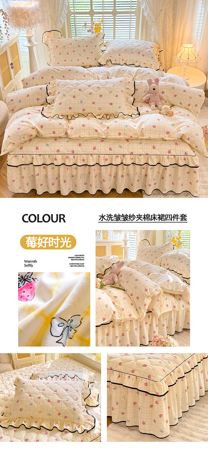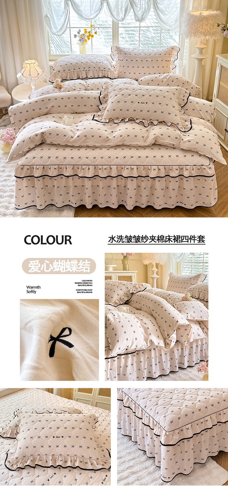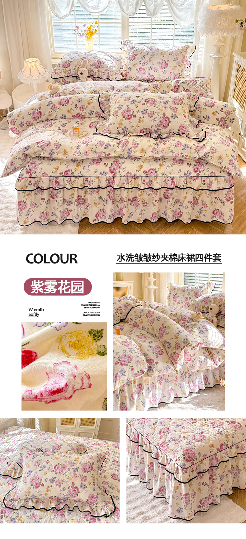 当前位置: 91家纺网 > 商品网购 > 床品套件 > 四件套 > 其它四件套 > 优家居 2025新品水洗棉夹棉床裙四件套韩版糯糯棉水洗皱皱纱床罩被套直播爆款 秘园絮语